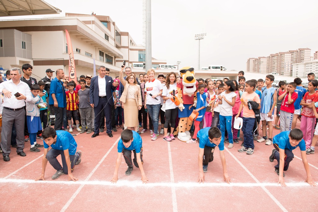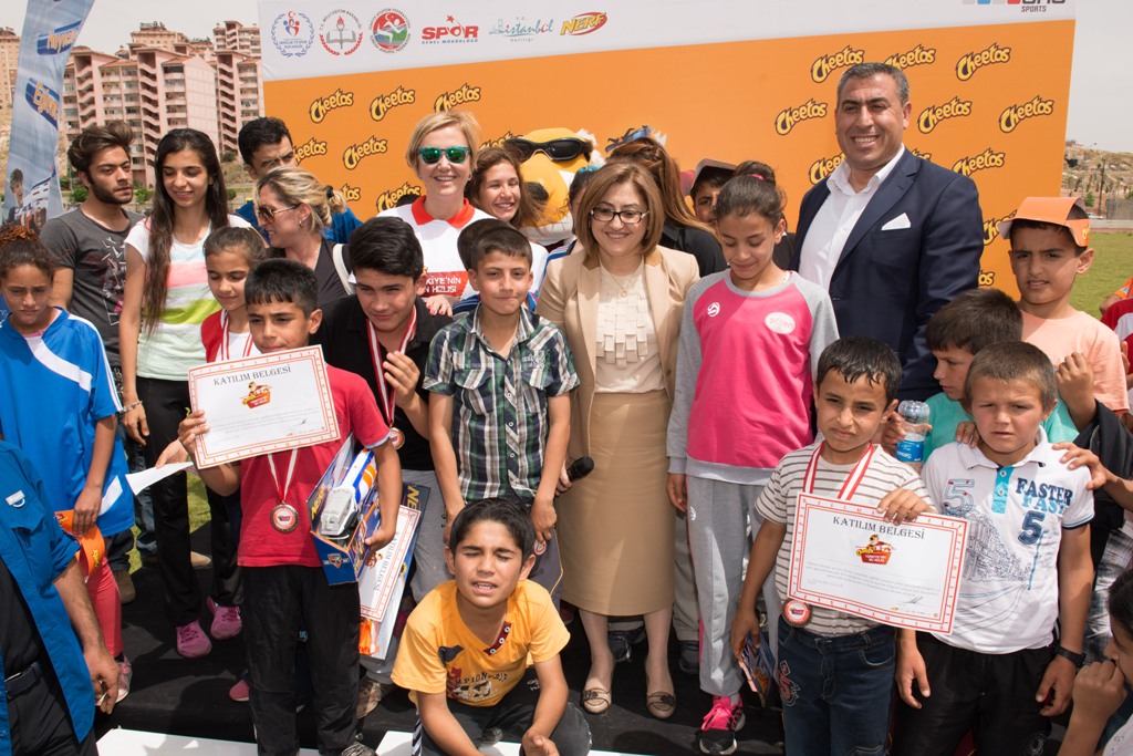 Gaziantep Büyükşehir Belediye Başkanı Fatma Şahin ve organizasyonun marka elçisi Berna Laçin'in de katıldığı etkinlikte çocuklar, milli sporcu Bahar Saygılı'nın ısınma hareketleriyle yarışlara hazırlandı.