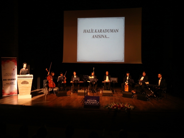 Türk Sanat Müziği’nin eşsiz parçalarının seslendirildiği konserde, Gaziantep’te büyüyen kanun virtüözü Halil Karaduman’ın bestelediği birçok eser icra edildi. Karaduman’ın uluslararası başarısı, yaşadıkları ve anılarından bahsedilerek, sanatçının çok yönlü kişiliği anlatıldı.