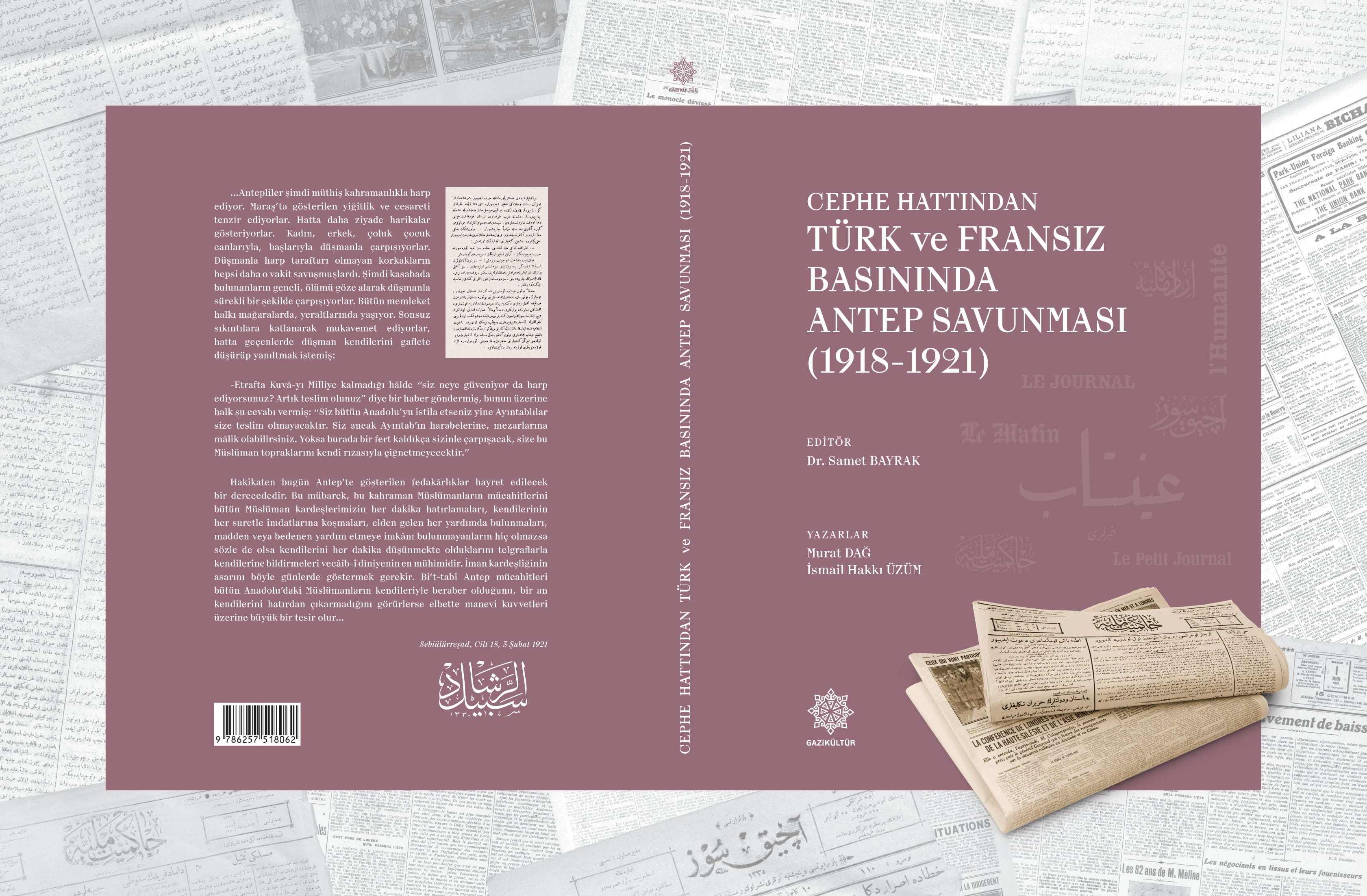 Gaziantep Büyükşehir Belediyesi tarafından Gaziantep’in kurtuluşunun 100. yıl dönümü kutlamaları kapsamında Murat Dağ ve İsmail Hakkı Üzüm’ün hazırladığı, Cephe Hattından Türk ve Fransız Basınında Antep Savunması (1918-1921) adlı kitap yayımlandı. Okurlar eserle dönemin Türk ve Fransız basınında kaleme alınan haber kaynaklarına ve verilen QR kodu aracılığıyla da asıl nüshalara ulaşabilecek.