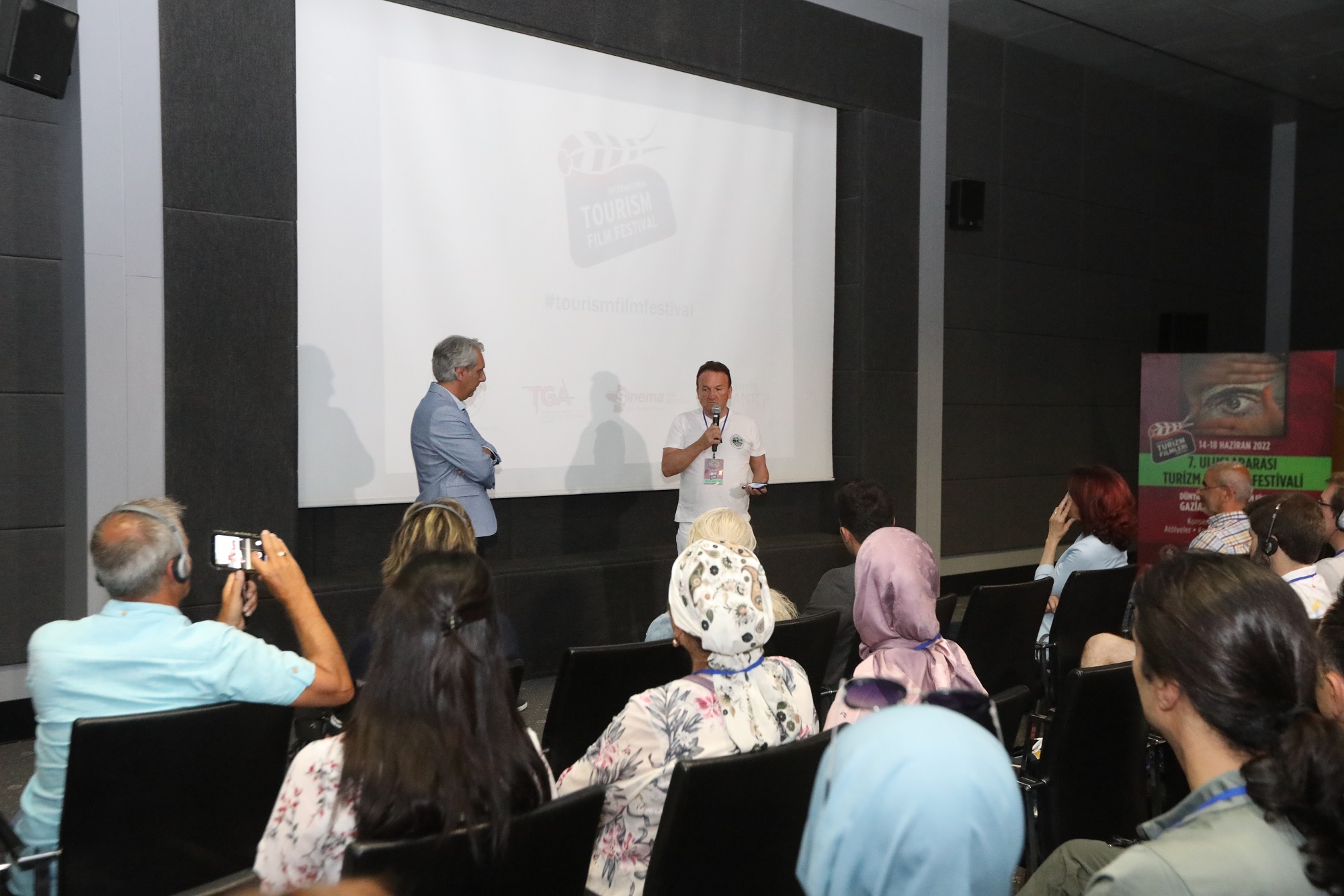 Gaziantep Büyükşehir Belediyesi ev sahipliğinde düzenlenen 7’nci Uluslararası Turizm Filmleri Festivali’nin ikinci gününde Külltür ve Turizm Bakanlığı’na bağlı Sinema Genel Müdürlüğü’nce “Türkiye’de Film Çekimi” (Filming in Türkiye) temalı sunum yapıldı.