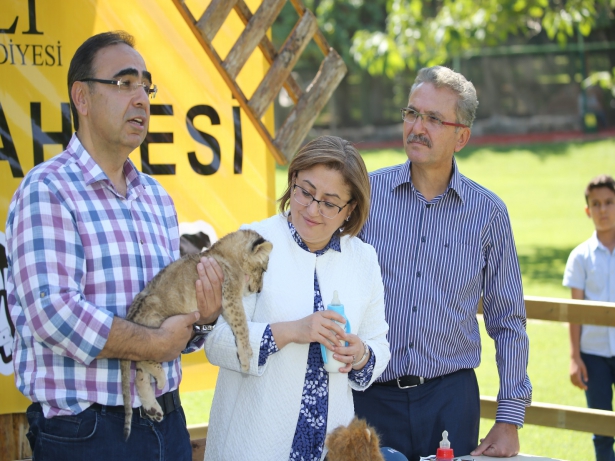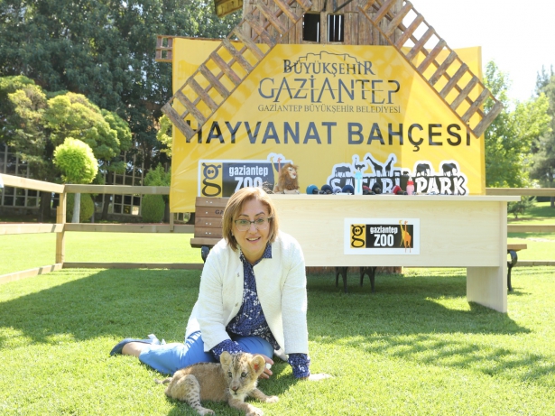 Gaziantep Büyükşehir Belediye Başkanı Fatma Şahin, belediye bünyesindeki hayvanat bahçesinde koruma altındaki yavru aslanı ziyaret etti.