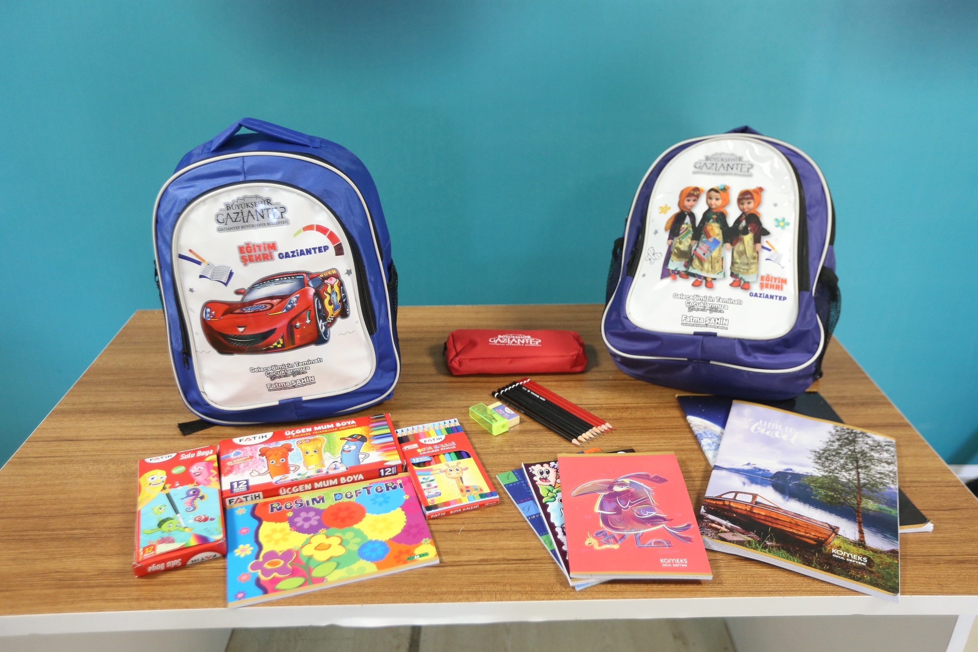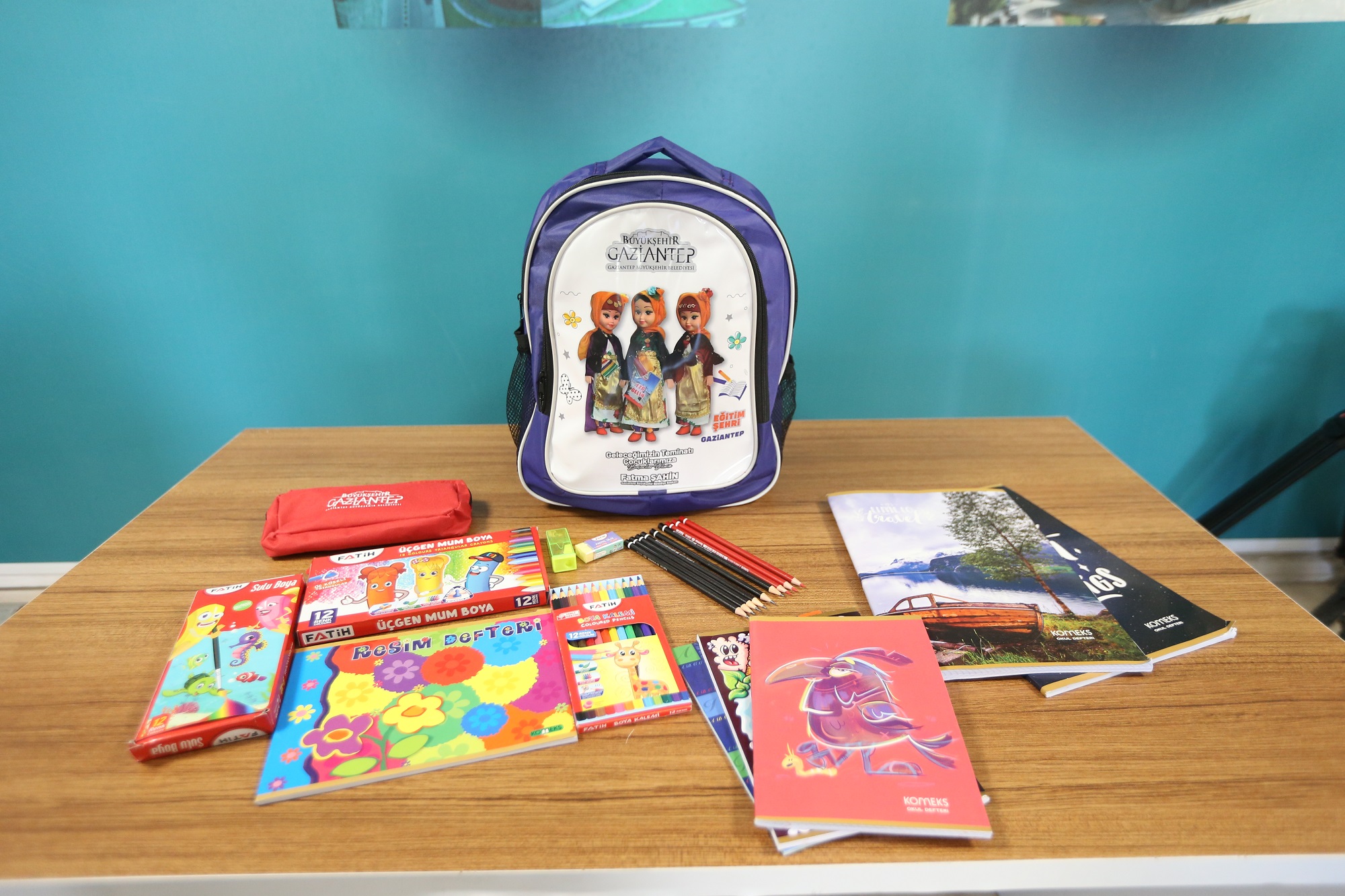 Gaziantep Büyükşehir Belediyesi Kadın Aile Eğitim ve Sosyal Hizmetler Daire Başkanlığı’nca yürütülen çalışmada Gaziantep’te merkez ve ilçelerdeki tüm okullarda 1’inci sınıf öğrencilerine okul çantaları ile birlikte, 12 renkli sulu boya, 6’lı siyah kurşun kalem, silgi, kalemtıraş, kalem kutusu, 12 renkli pastel boya, A5 kareli defter, güzel yazı defter, A5 çizgili okul defteri, resim defteri, A4 kareli defter, A4 çizgili okul defteri, 12 renkli kuru tahta boya, 3’lü kırmızı kurşun kalem hediye edilecek.