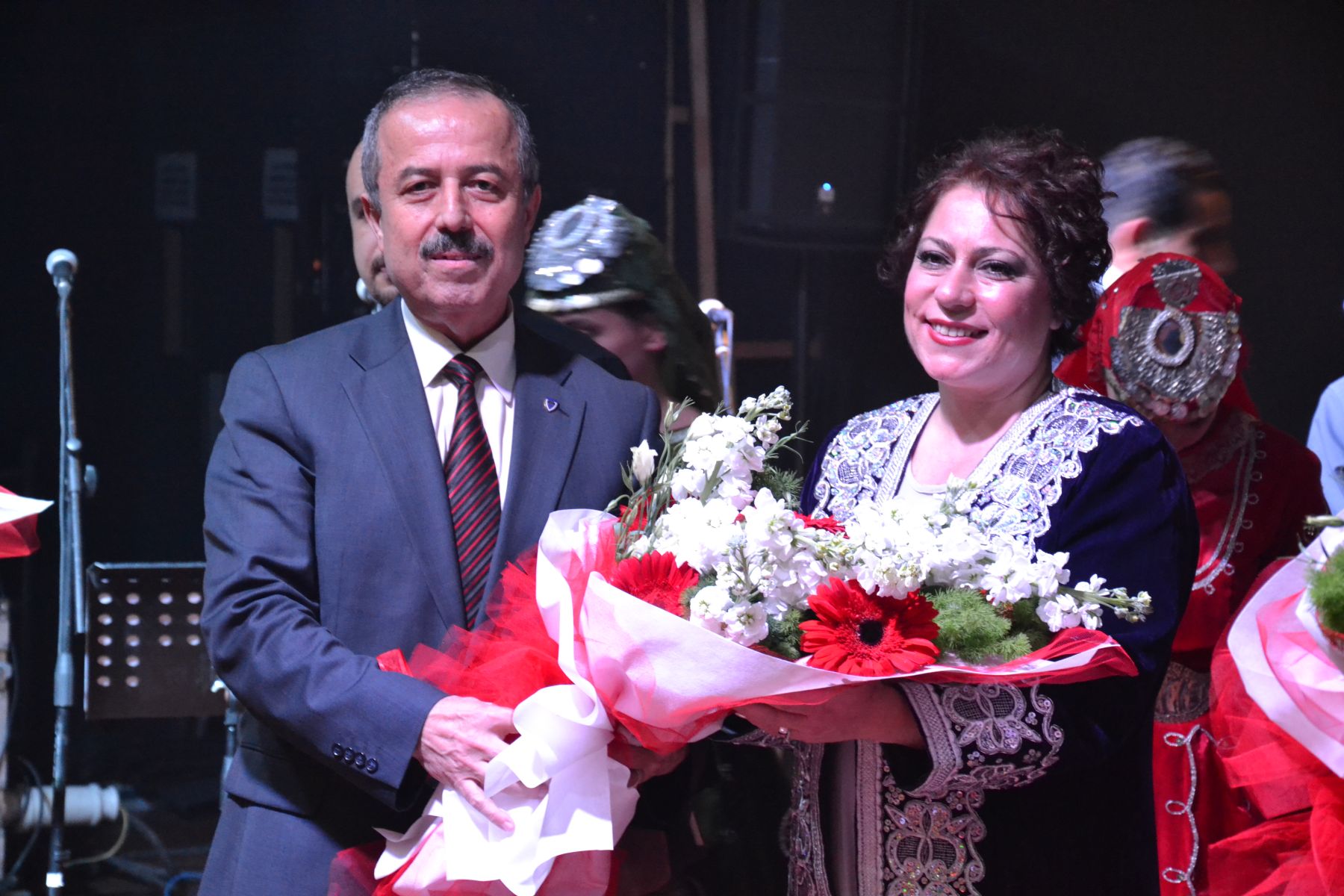 Müzikale katılarak sanatçılara teşekkür çiçeklerini sunan Vali Yardımcısı Mehmet Taşdöğen de konuşmasında “Kadına Şiddetle Mücadele gününe özel hazırlanan böyle bir projede, çok değerli sanatçılarımızı bir arada izlemekten, bölgemizde zaman zaman gördüğümüz ve tasvip etmediğimiz olayların aksine bu gecede olduğu gibi ana ile kızının, gelin ile kaynanasının Anadolu’da nasıl güzellikler ortaya koyduklarını nasıl ortak paydalarda birleştiklerini bir kez daha gördük. Kurtuluş Savaşında da sırtında çocuğu, omuzunda mermisi ile bu vatanın kazanılmasında, hatta Gazi kentin kurtarılmasında da çok önemli rol oynayan anadolu anası bugün gördüğümüz gibi sanatta da kendine düşen görevi en iyi şekilde yerine getiriyor. Ailede vücudun başı erkekse, boyunu kadındır tasvirinden de anaların ne yapabileceğini çok iyi anlıyoruz. Projede görev alan tüm sanatçıları tebrik ediyorum.” dedi.