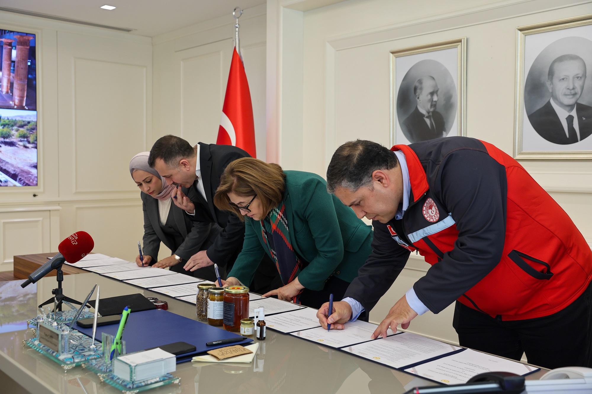 Büyükşehir Belediyesi’ndeki imza törenine, Gaziantep Büyükşehir Belediye Başkanı Fatma Şahin, Gaziantep İl Tarım ve Ormancılık Müdürü Mehmet Karayılan, Gaziantep İli Arı Yetiştiriciler Birliği Başkanı Nebi Koca ve Sahaya Hazır İnovasyon Derneği Başkan Yardımcısı Ayam Mustafa katıldı.