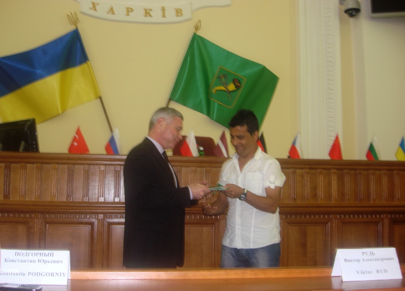 Gönüllü öğrencilere katılım sertifikalarını veren Kharkiv Belediye Başkan Yardımcısı Igor Terekhov, Kharkivde bulunan ve bu önemli organizasyona katkı sağlayan tüm şehirlerin Belediye Başkanlarına ve başarılı çalışmalarından dolayı gönüllülere teşekkür etti.