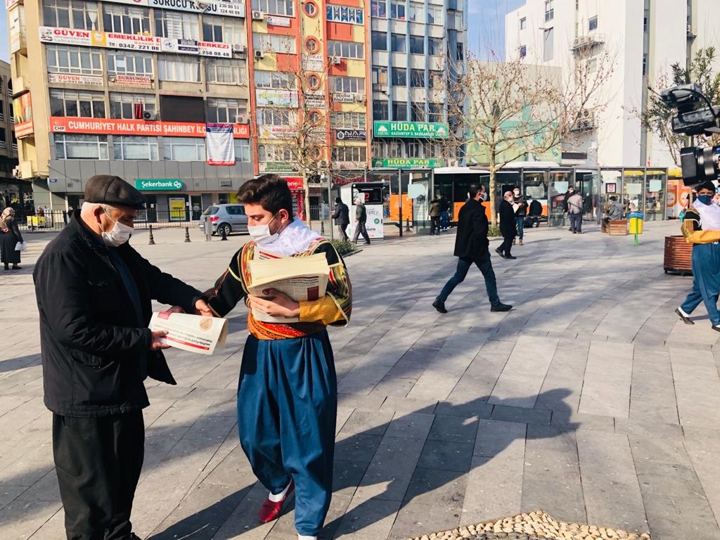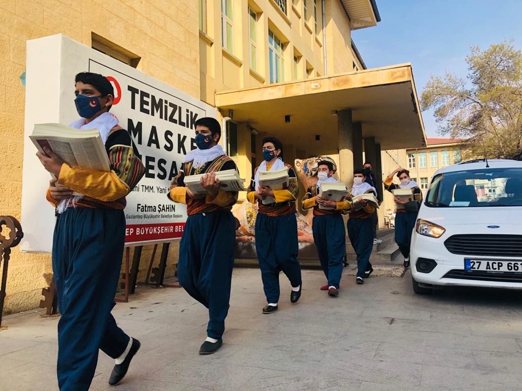 Cumhurbaşkanı Recep Tayyip Erdoğan’ın tensipleriyle Cumhurbaşkanlığı himayelerine alınan Gaziantep’in Kurtuluşu’nun 100’üncü yıl kutlamaları aralıksız devam etti. Bu kapsamda Büyükşehir Belediyesi’ne bağlı GAZİKÜLTÜR A.Ş. tarafından Antep Savunması’nda her ay tarihi konuların ele alınacağı Ayıntap Haberleri Haber Bülteni’nin 2’nci sayısı çıkarıldı. Bu ayki sayının temasını 8 Şubat 1921’de Ayıntab’a verilen “Gazilik” unvanı oluşturdu. Gazeteler, dönemin kültürel kıyafetlerini giyen çocuklar tarafından Balıklı Meydanı başta olmak üzere Kale ve çevresi, Gaziler Caddesi, Almacı Pazarı ve Bakırcılar Çarşısı’nda dağıtıldı.