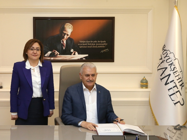 Kongrenin ardından Büyükşehir Belediye Başkanı Fatma Şahin’i makamında ziyaret eden Başbakan Yıldırım’ı, down sendromlu çocuklardan oluşan bando takımı karşıladı. Karşılamanın ardından Başkan Şahin, Başbakan Yıldırım’a 4 yıl içerisinde tamamlanan ve yapımı devam eden yatırımlar hakkında bir sunum gerçekleştirdi. Başbakan Yıldırım, başarılı çalışmalarından ötürü Başkan Şahin ve ekibini kutladı.