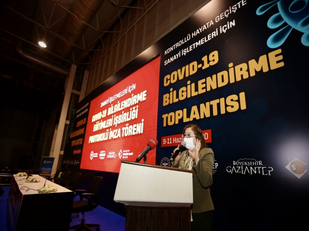 Gaziantep Valisi Davut Gül ise pandeminin büyük bir tehlike niteliği taşıdığını hatırlatarak, “Sıkıntı çok büyük. Virüs çok kolay yayılıyor. O nedenle herkes kendisinin doktoru olmalıdır. Keşke bir yönetmelikle salgından korunması sağlayabilsek ancak bu virüsün önüne böyle geçemeyiz. Duyarlı olmalıyız. Gaziantep’te diğer şehirler gibi üretmek zorunda. Bizim hassasiyetlerimiz mevcut. 4 ana başlığı devlet politikası olarak benimsedik. Kamu düzeninin muhafaza edilmesi, üretim ve tedarik zincirinin muhafaza edilmesi, sağlık sisteminin ayakta kalması ve son olarak kişisel korunma yöntemlerini düzenli bir şekilde yerine getirmek. Son madde çok önemli herkesin korunma kurallarını yerine getirmesi gerekiyor. Tabi kendini disipline ederken de bunu kişilerin inisiyatifine bırakmamak da önemli. Burada bizim iş birliğini sağlamamız gerekiyor. Üretim zincirinin devam etmesi için üretime devam edilmesi gerekiyor. Ziyaretlerimiz oldu ve fabrikalarımızın durumunun çok iyi olduğunu gördük. Yüzde 99’unun fiziki şartları çalışmaya elverişli. Bizim yüzde 1’e yoğunlaşmamız lazım. Çünkü salgın tehdidi hafife alınmamalı. Bizim sadece hijyen güvenliğini fabrikada sağlamamız da yanlış bir algı oluşturur. Kişinin özel alanında da aynı duyarlılığı göstermesi şarttır. Aile hayatında örneğin, bu salgın durumunu gözeterek yaşam standartları belirlenmeli ve korun yöntemleri uygulanmalıdır” diye konuştu.