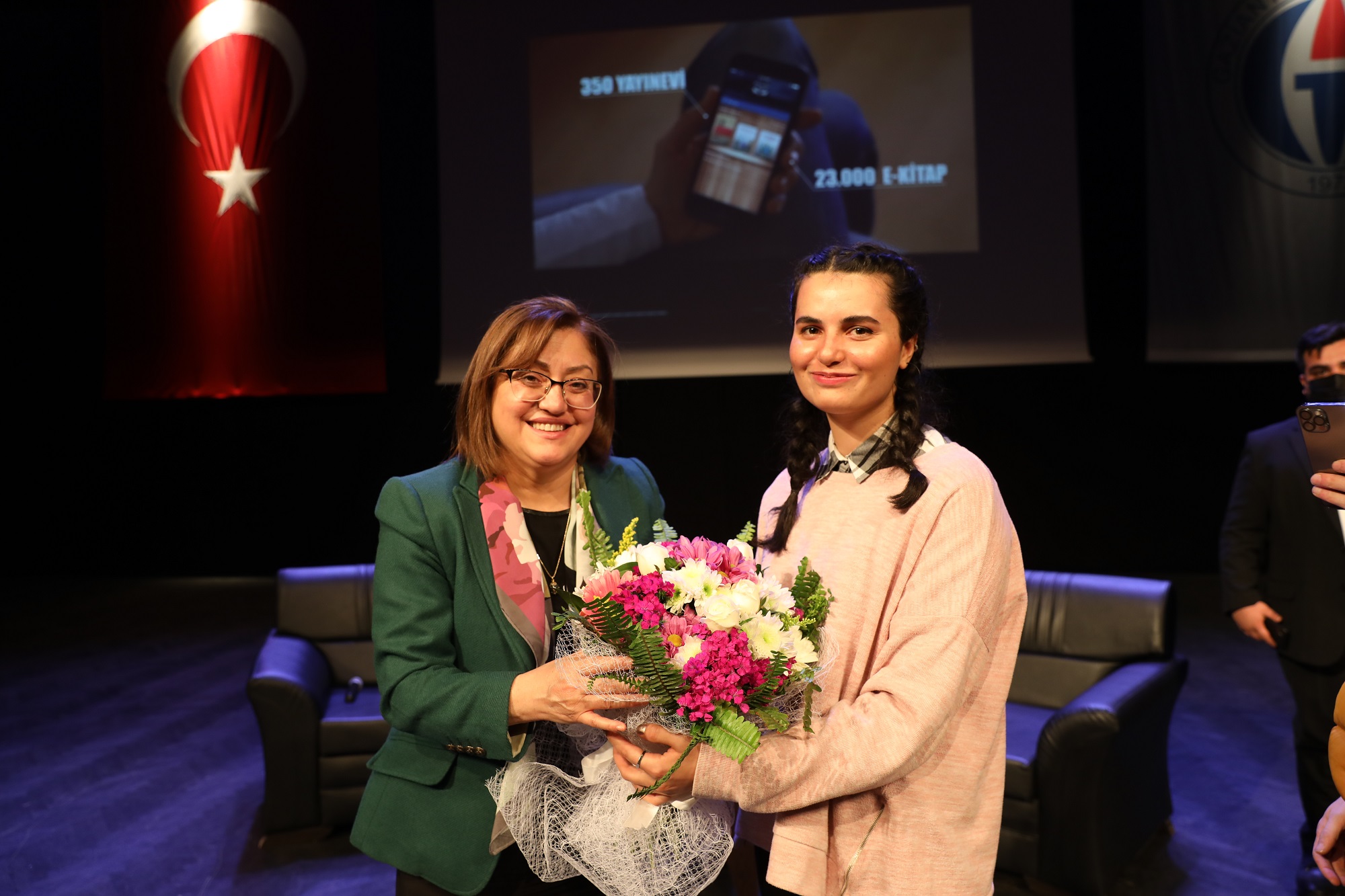 Öğrencilerin programa gösterdiği ilgi için teşekkür eden Şahin: “Her genci gördüğümde hem 2 çocuk annesi bakışı ile bakıyorum hem de 2 milyon insan bize emanet. Şehr-i Emin olmak büyük sorumluluk. Hepinize bir emanet olarak bakıyorum. İnsanın, şehrin, gençlerin bir sorumluluğu var ve bu sorumluluğa bir anne gözü ile bakarak heyecanlanıyorum sürekli. Birlikte geleceğe bakıp onu inşa etmek gerek. Genç bir bakışla baktığınız zaman ‘Dünya nereye gidiyor?’ bunu bir anlamak gerekiyor. Zamanın ruhu çok önemli. Bugün yüksek ihracat değerlerine sahip ve 400 bin sigortalı çalışan işçimiz olan sanayisi olan bir şehiriz. Ama artık bilgi ve teknoloji çağındayız ve bilgi ekonomisini oluşturuyoruz. Bu yeni teknolojik ürünleri üretecek hale dönüşmemiz gerekiyor. Savunma sanayisinde yaptığımız işler çok heyecanlı oldu. Bunun için bizim iyi yazılımcı, mühendis, donanımlı bireyler yetiştirmemiz gerekiyor. 100’üncü yıldayız. Ecdat, öyle bir mücadele vermiş ki panorama müzesine baktığımız zaman, her bir fırçasında görüyoruz. Şehir gaziler ve kahramanlar şehri. Açlıkla beraber Fransız ile mücadele edilen bir şehir bugün gastronomi başkentine geçiş yaptı. Gazi Mustafa Kemal Atatürk ve bütün silah arkadaşlarına, bizi Gazi yapan ecdadı sevgi ve saygı ile selamlıyorum. Yüz yıl çok önemli. Bu asırdan aldığımız büyük bir ilham var. İkinci yüzyılın destanını siz gençlerle birlikte yazacağız. Destan yazmak için zamanın ruhunu iyi anlamak lazım” diye konuştu.