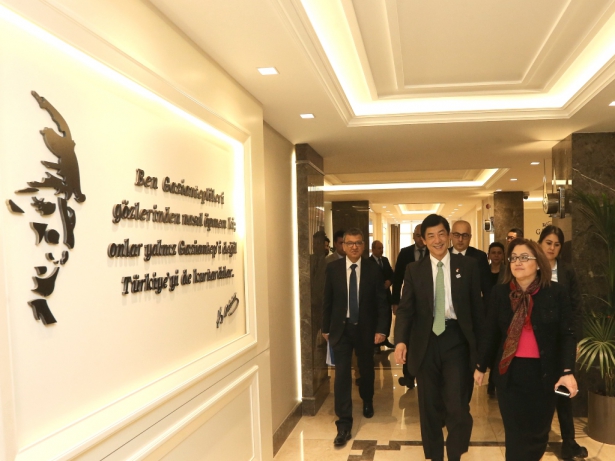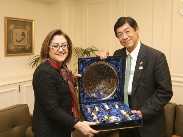 Japonya'nın Ankara Büyükelçisi Akio Miyajima’yı makamında ağırlayan Başkan Fatma Şahin, Japon ve Türk halkının tarih boyunca iki dost ve kardeş halk olduğuna işaret ederek, “Japon ve Türk halkı, en zor zamanda bir araya gelerek Dünya’nın daha yaşanabilir daha adaletli bir dünya olması için çok sağlam duran iki halktır. Güçlü bir şekilde sesimizi Dünya’ya duyurmamız gerekiyor. Gaziantep Büyükşehir Belediye başkanlığına geldiğim zaman Japonya Uluslararası İşbirliği Ajansı (JAİKA) bizlere, Türkiye’nin gelişmişliğinden dolayı Türkiye’den çıkarak Afrika ülkelerine destek vereceklerini söylediler. Bölgede yaşanan göç yüzünden 500 bin Suriyeliyle artan altyapı ve üst yapı ihtiyaçlarına yönelik hazırlanan projelerimize Jaika’nın vereceği destekle belediyecilik görevimizi yerine getirmekte elimizi güçlendireceğini anlattık, hazırlanan projelerimize destek verildi. Bu manada ülkem ve şehrim adına çok teşekkür ediyorum.