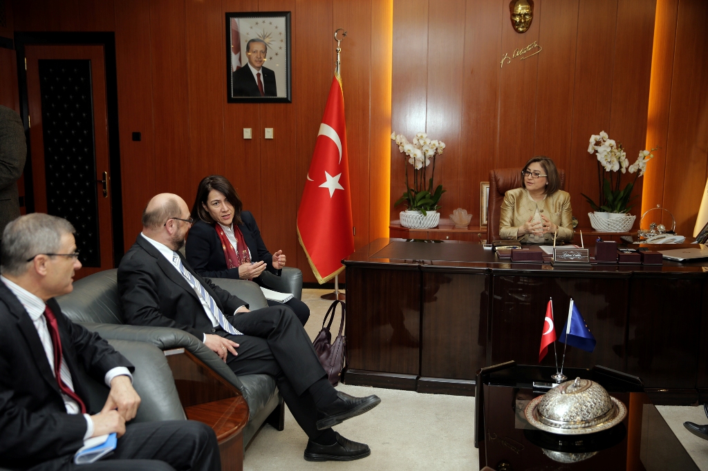 Schulz da Kilis’teki sığınmacı kampını ziyaret ettiğini, çok etkileyici bulduğunu, kamp temsilcileri ve sivil toplum kuruluşlarının temsilcileriyle görüştüğünü söyledi.