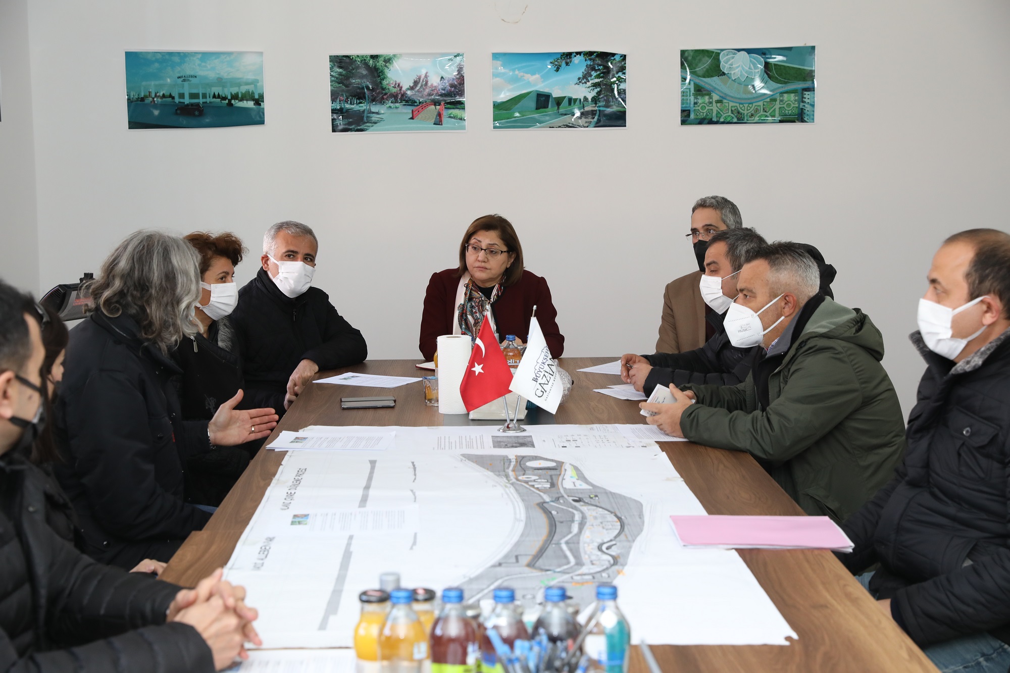 “Dünya çok zor bir dönemden geçiyor. Biz bu dönemde şehri şantiyeye çevirdik. Yoğunluktan dolayı giremediğimiz, yapamadığımız yerlere girerek işleri tamamladık. Hiç durmadan çalıştık. Belediyecilik zor iş. Yetişmiş insan, aşkı, bir derdi olan bir takım, aile istiyor. Başarı en zor şartlarda gaza basarak çalışmaktır. Bu şehrin insanı, sanayicisi, esnafı, çiftçisi, belediyecisi, mühendisleri en zor şartlarda gaza basarak çalıştı. ‘Yeşil Antep’ e yakışır yaklaşık toplam 600 bin metrekare, içinde de 1 buçuk kilometre kanal hattının olduğu Vadi Alleben’ i yapıyoruz. İçinde yok yok. Çocuk, genç, aile dostu bir park olacak. Çünkü hafta sonu şehirde bir sahre kültürü var. Vatandaşların gelip çoluğu çocuğuyla dinlenebileceği, eğleneceği, keşfedebileceği bir mekan planladık. İçinde gençler ve çocuklar için oyun grupları, çocuk kütüphanelerine kadar bir ailenin bizden talep ettiği, toprakla ailenin buluştuğu çok özel bir mekan. Burada bir başarı hikayesi var. 600 bin metrekarelik kısmının tamamının mülkiyeti çözüldü, çok güzel bir imar planlaması yapıldı. İçerisinde de çok iyi bir tasarım çalışıldı. Bu döneme imza atacağı, bittiği zaman herkesin takdirini toplayacak bir eser olacak.’’