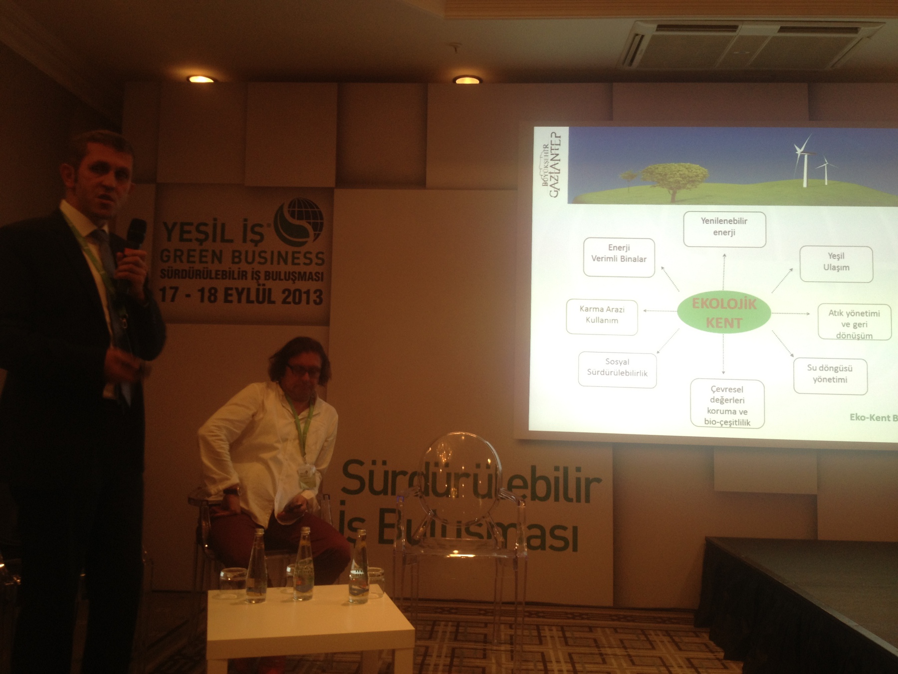 Gaziantep Büyükşehir Belediyesi İmar ve Şehircilik Daire Başkanı Sezer Cihan ile Ekolojik Kent Projesi, Proje Mimarlarından Mimar Erden Güven’in birlikte yaptıkları, ‘Bir Eko Şehir Modeli: Gaziantep’ sunumu ile Türkiye'de bir ilk olan 3200 hektar alan üzerine kurulacak olan ekolojik tabanlı kent modeli Ekolojik Kent Projesi konferansta büyük ilgi topladı.