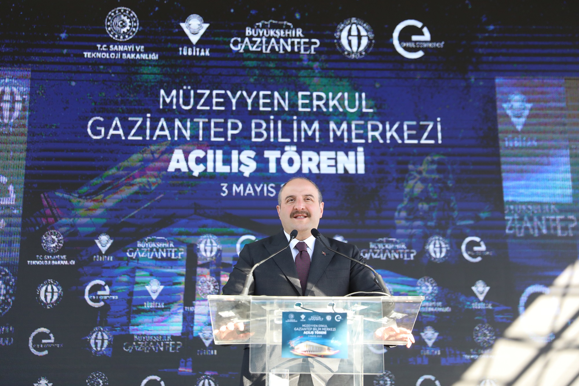Sanayi ve Teknoloji Bakanı Mustafa Varank, ülkenin bilim ve teknoloji alanındaki yükselişine ivme kazandıracak her yatırımın çok değerli olduğunu vurgularak, “Bilim merkezinin hayata geçmesi için elini taşın altına koyan herkese teşekkür ederim. Erkul ailesine teşekkürlerimi sunuyorum. Buraya gelen her bir evladımız gelecekte buradan çıkacak Aziz Sancarlar diyecek ki Müzeyyen Erkul hanımefendinin vesilesiyle bir bilim merkezi yapıldı. Bizim gündemimiz tek; bilim, teknoloji, sanayi ve inovasyon. Bizim amacımız geleceğimiz evlatlarımızı geleceğin teknolojileriyle yetiştirebilmek. Müzeyyen Erkul Gaziantep Bilim Merkezi, öğrencilerimizin bilim ve teknolojiye olan ilgisini artırarak geleceğin bilim insanlarını yetiştirmemize yardımcı olacak. Burada öğrencilerimiz deneyler yaparak öğrendiklerini somutlaştırabilecekler. Bilim ve teknoloji alanında özgün çalışmalar yapabilecekler. Bu ortamları onlara sağlayacağız” diye konuştu.