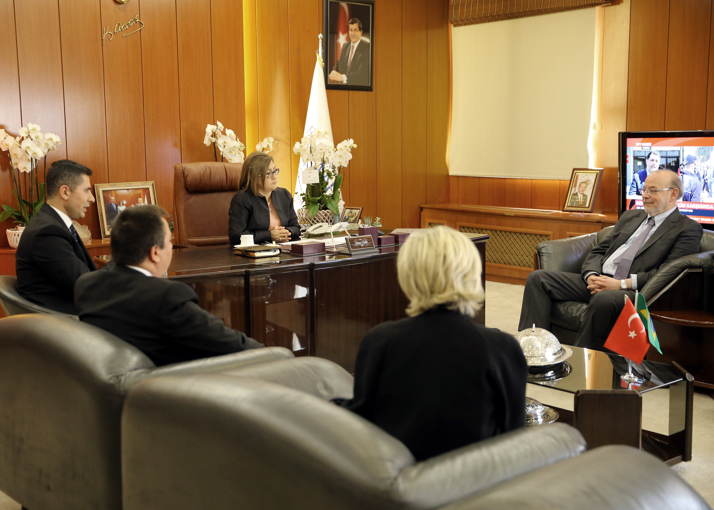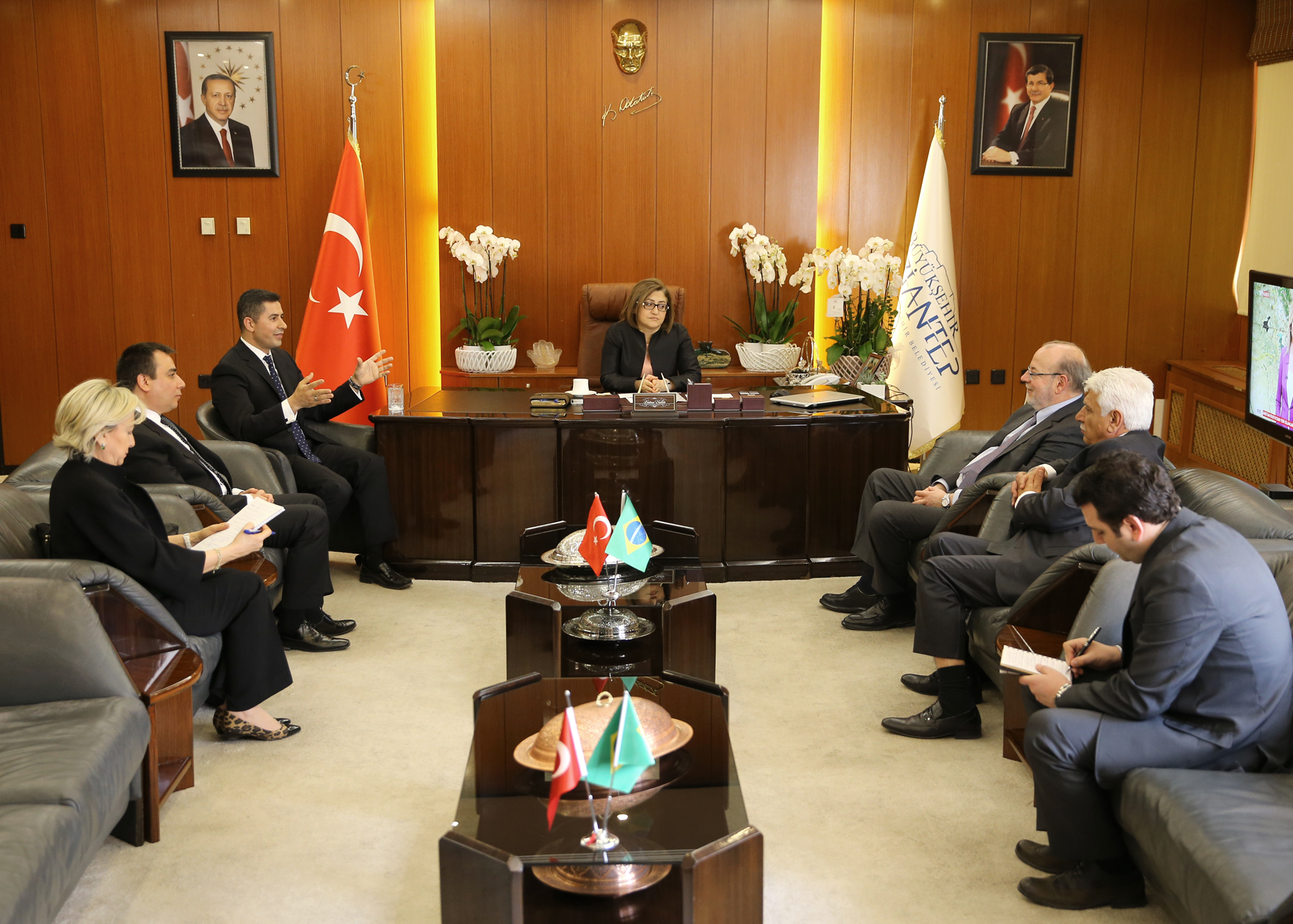 Konuşmaların ardından Şahin, Salgado’ya hediye takdim etti.