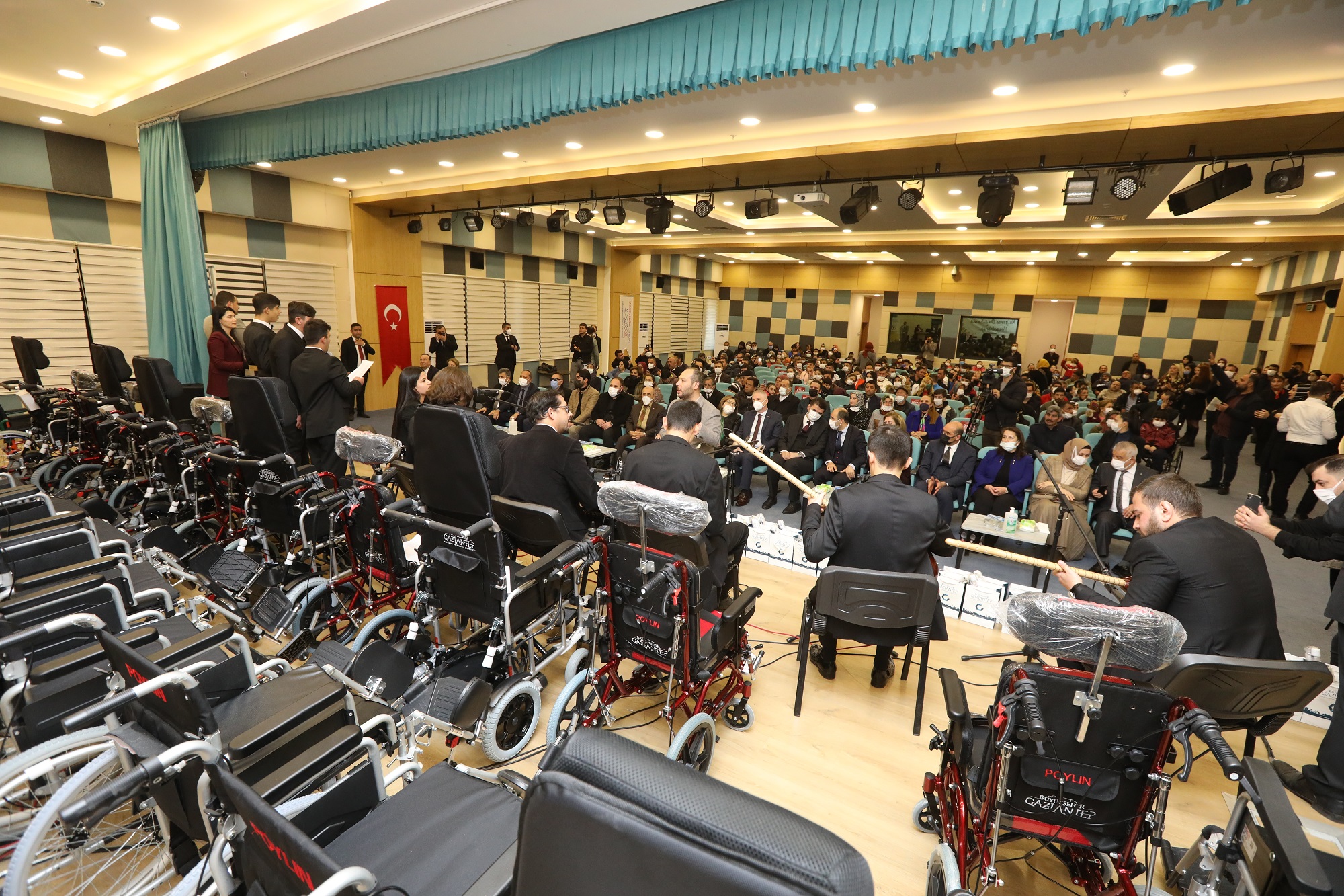 Gaziantep Büyükşehir Belediyesi (GBB) engellilerin yaşam koşullarını iyileştirmek için 250 manuel ve akülü sandalye ile içerisinde engelli bireylerin hayatını kolaylaştıracak diğer medikallerin de bulunduğu toplam 630 malzemeyi ihtiyaç sahibi engellilere törenle dağıttı.