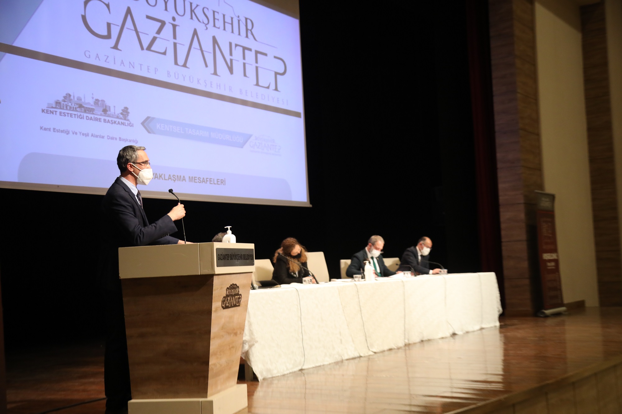 Toplantıda konuşan Gaziantep Büyükşehir Belediye Başkan Vekili Erdem Güzelbey, güzelleştirme çalışmalarına başlandığında karşılaşılan sorunlar ve şikayetler doğrultusunda konunun ortaya çıktığını aktararak, “Gaziantep’e gelenler girenler bir güzellikle, girdiğinde hareketli bir şehirle karşılaşması gerekiyor ve bununla ilgili çalışmalar yapıyoruz. Şu anda biz Başpınar Yolu’nu düzelteceğiz. Yol üzerinde bir işletmenin on tane tabelası var. Bunların hepsini disipline etmemiz gerekiyor. İnanılmaz şikayetler geliyor. Bazı şehirlere karşı geride kalıyoruz. Özellikle tabela ve şehir girişleri konusunda. Bunları toparlamaya çalışıyoruz. Ayrıca iç alanlarda da bir çalışma yapıyoruz. Bilindiği üzere Maarif, Suburcu ve İnönü Caddesi’nde çalışmalar var. Çevre ve sokak sağlıklaştırmalar yapıyoruz. Bunları yaparken işletmelerle de bir çalışma yürütüyoruz. Büyükşehir Belediyesi olarak ilçe belediyelerle ortak görüştüğümüzde ana arterlerde bir düzenleme yapılması için ortak karar aldık. Bu ana arterlere öncelik verirken sahada tespit yapıyoruz. Çalışma devam ederken pandemi geldi ve çoğu işletmemiz kapalı kaldı. Esnaf birtakım sıkıntılar yaşadığı için çok ilerlenmedi. Ama öncelikli olarak yeni açılan işyerlerinde sistematik olarak bunları uygulamaya başladık. Açılan işyerlerinde kapalı ve açık alan kullanımda nasıl olması gerektiğini kendilerine gösterip ona göre projeleri onaylayarak iş yeri açma ruhsatını veriyor ve zabıta ile denetimi sağlıyoruz. Bakıldığında bazı yerlerde keyfi olarak bir estetik sorunu yaşıyoruz” diye konuştu.
