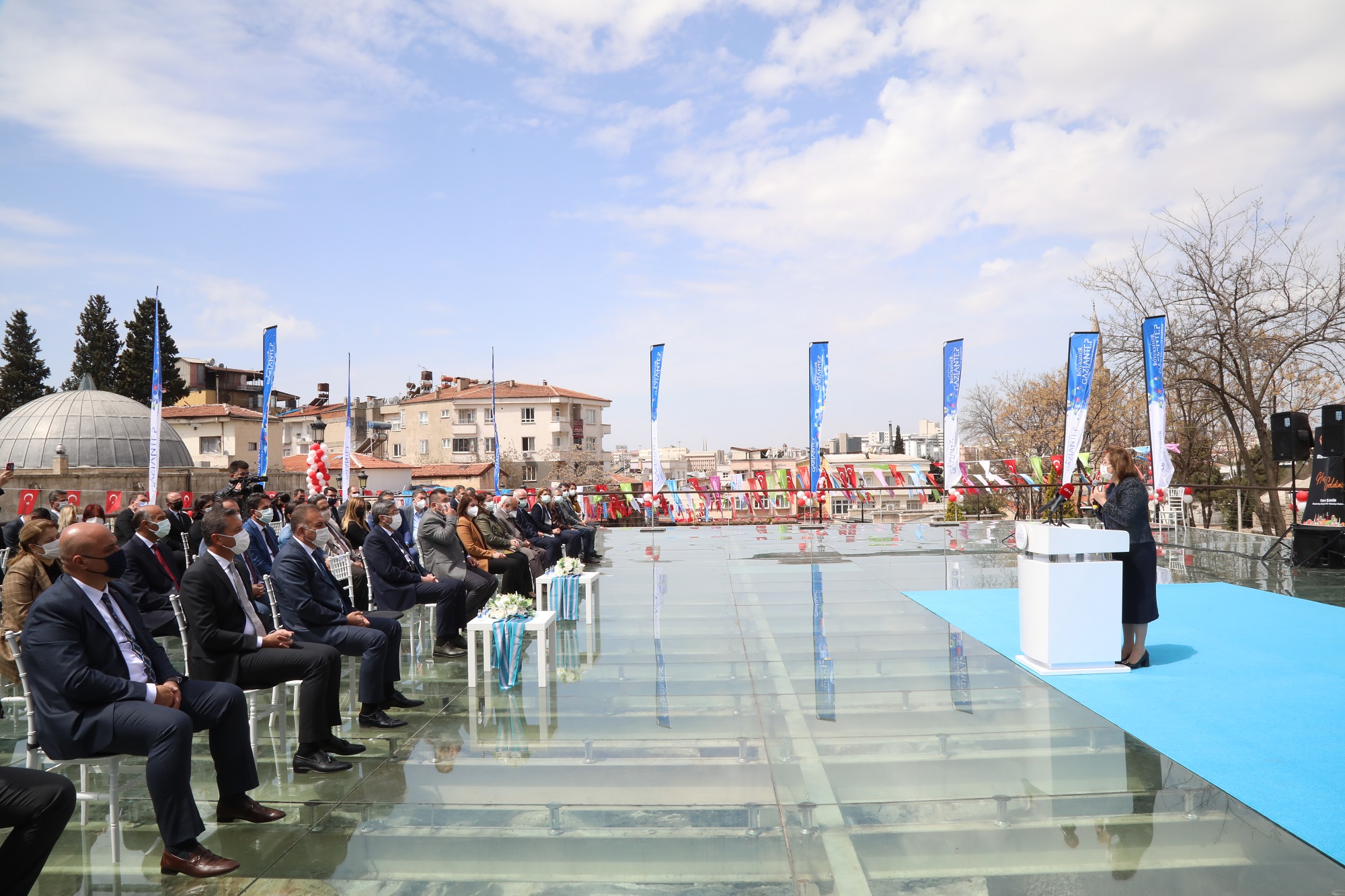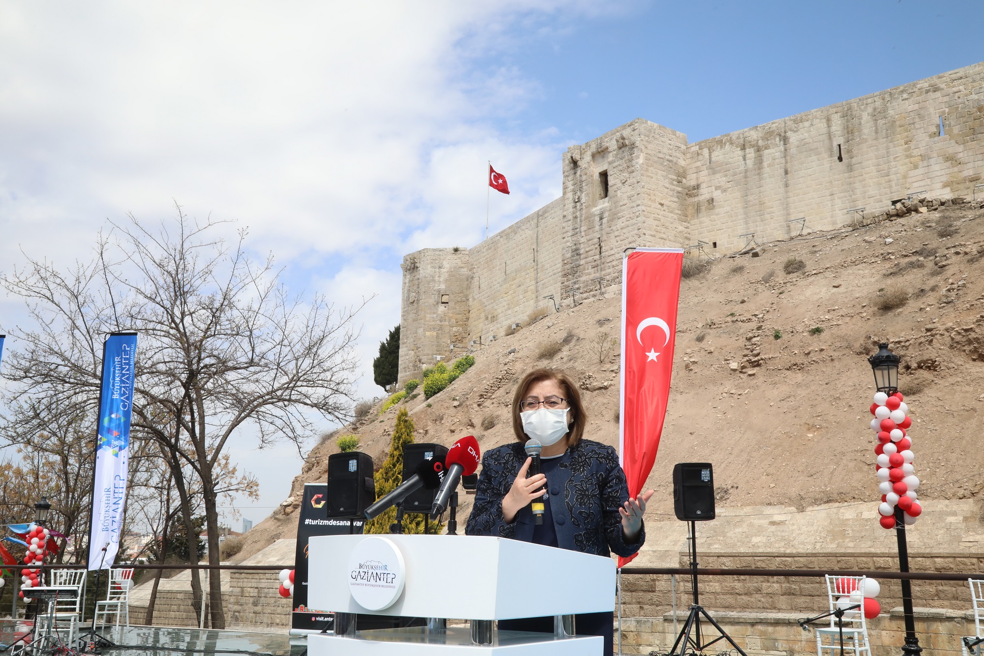 Etkinlikte konuşma yapan Gaziantep Büyükşehir Belediye Başkanı Fatma Şahin, etkinliğin yapıldığı Gaziantep Kalesi’nin şehrin simgesi, geçmişi, tarihi, bağımsızlığın simgesi olduğunu söyleyerek, “Kültür ve Turizm deyip geçmeyeceksiniz. İstihdam, ihracat, ekonomi, dünya barışına katkısı var. İnsanlar tanımadığı bilmediğinin düşmanı. Bir araya gelirseniz, ortak sofrada buluşursanız, ortak sorunları çözebiliriz. Ramazan Ayı’ndayız. Yetim, yaşlı, yoksul, mağdur herkes bizim kardeşimiz, kimseyi geride bırakmadan çok güçlü çalışıyoruz. Dünyanın en eski coğrafyasındayız. Dolayısıyla bizim üzerimizde çok büyük bir emanet var. Taş muhteşem, desen muhteşem, taşların birbiriyle geçişi muhteşem. İçeriye giriyorsunuz bir hayat var. Külliyatlarla birlikte ciddi olarak insanımızı besliyor dinlenmesini sağlıyor. Öyle bir tarihi öyle bir yüksek coğrafyası var ki her bir eser bize büyük bir sorumluluk demektir. Şirketleştik Kültür AŞ’yi kurduk. 41 kitabımız şu anda çıktı ve devam ediyor. Mesela o kadar önemli ki Gaziantep’in ticari hayatından tutun sanat hayatına her şey var. Gaziantep’i Gaziantep yapan bütün değerleri kitaplaştırıyoruz. Gençlerin dünyasında ‘Benim dedem, benim ninem, benim babaannem bu işi yapmış, ben de devam ettirmeliyim’ demek lazım. O yüzden bu şehirdeki, bu ülkedeki iyi vakıf insanlarını daha rol model olarak göstermemiz lazım. Şu anda Kültür AŞ olarak bunu çalışıyoruz. Bu anlamda elimizde büyük bir hazine var. Taşında toprağında bereket var. Gastronomi olarak öne çıkıyor. Bu şehir çalışmak zorunda. Bizim bu alanlarla ilgili kısmı yoğun bir şekilde devam ettirmemiz gerekiyor. Bir önemli alanımız ise inanç turizmi. Biz gelir gelmez 36 türbeyi restore ettik. Buraların ihtiyaçlarını giderdik. Bu türbelerin hepsiyle ilgili bir rota çıkardık. Bir Eyfel Kulesi’ne 80 milyon kişi gidiyor. Biz binlerce Eyfeliz. Kendimize güvenmemiz gerekiyor. Milletimizin değerlerine güvenmemiz gerekiyor. Şehri cazibe merkezi halinize getirirsek istihdamımız artar işsizlik azalır. Pandemi sonrası turizme çalıştık. Artık yeni turizm kolları yükselen bir değer ve bizde bulunan değerleri koruyup onları tanıtmamız gerekiyor. Bugün zor durumdayız ama yarın çok yakın. Kendi ihtiyaçlarımız belirleyip toparlamamız gerekiyor” dedi.