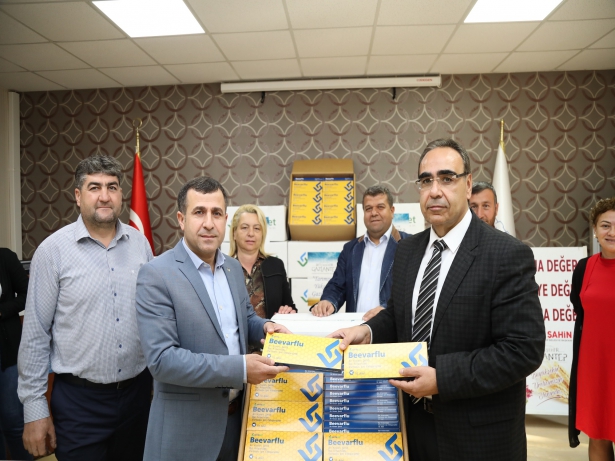 Gaziantep Arı Yetiştiricileri Birliği Başkanı Nebi Koca’ya 250 üyesine dağıtmak üzere arı biti ilacını teslim eden Doğal Hayatı Koruma ve Tarımsal Hizmetler Daire Başkanı Celal Özsöyler, Büyükşehir Belediye Başkanı Fatma Şahin’in talimatları doğrultusunda Varroa hastalığına karşı arıcılara ilaç dağıttıklarını söyledi.