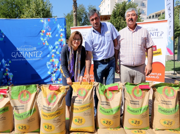 Çiftçiyi destekleme projesi kapsamında Araban ilçesinde 320 çiftçiye arpa ve buğday tohumu dağıttı. Toplamda 100 ton buğday tohumu 60 ton da arpa tohumu dağıtan Büyükşehir Belediyesi, buğday ve arpa ekiminde verimlilik oranını arttırıyor.