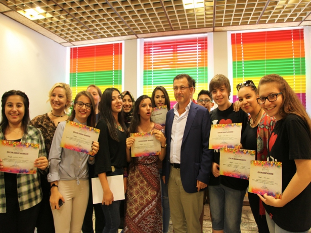 Konuşmaların ardından çeşitli kurslara katılan öğrencilere, Köken ve Tural sertifikalarını verdi.