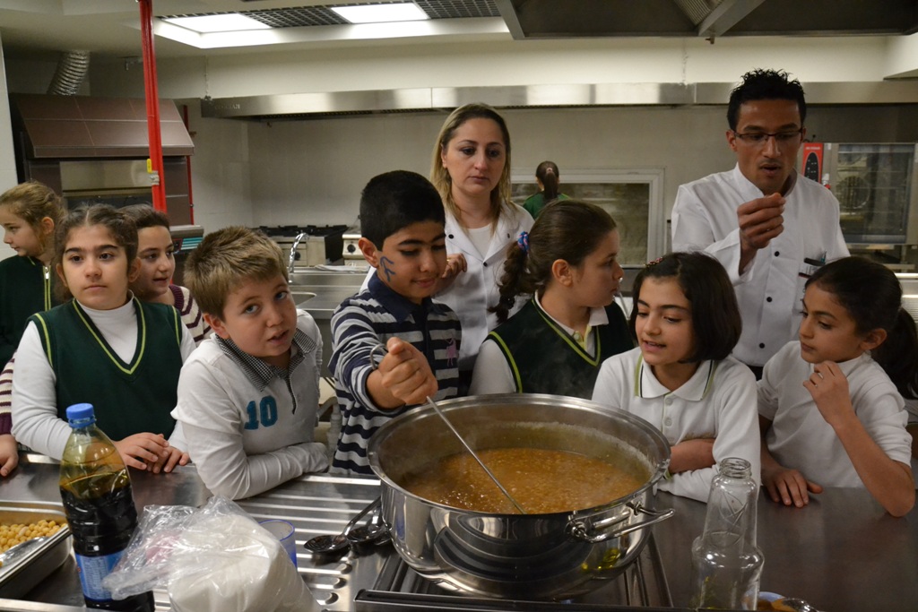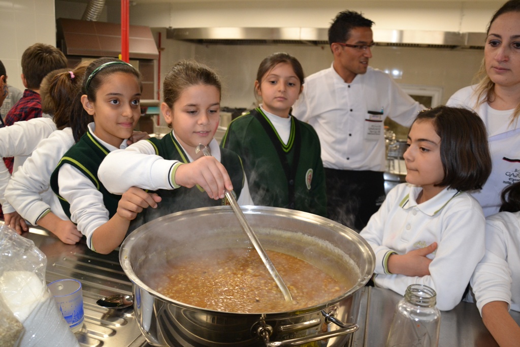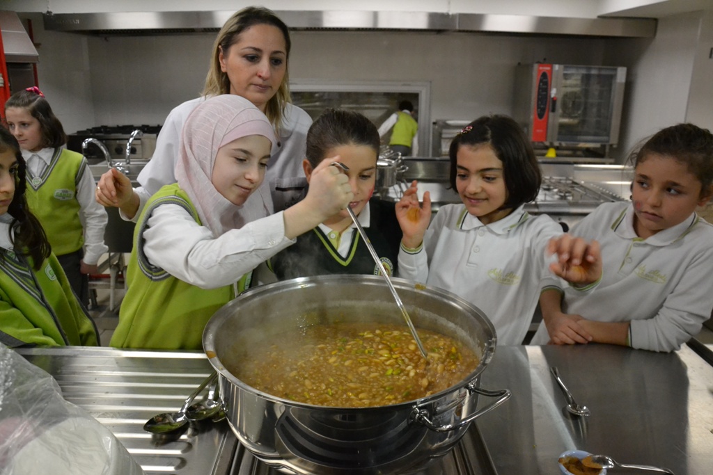 Bu yıl yapılan Büyükşehir Belediyesi tarafından düzenlenen aşure etkinliğinde ayrı okullardan gelen çocuklar, Suriyeli çocuklarla birlikte Mutfak Sanatları Eğitim Merkezi mutfağında aşure yaptılar.