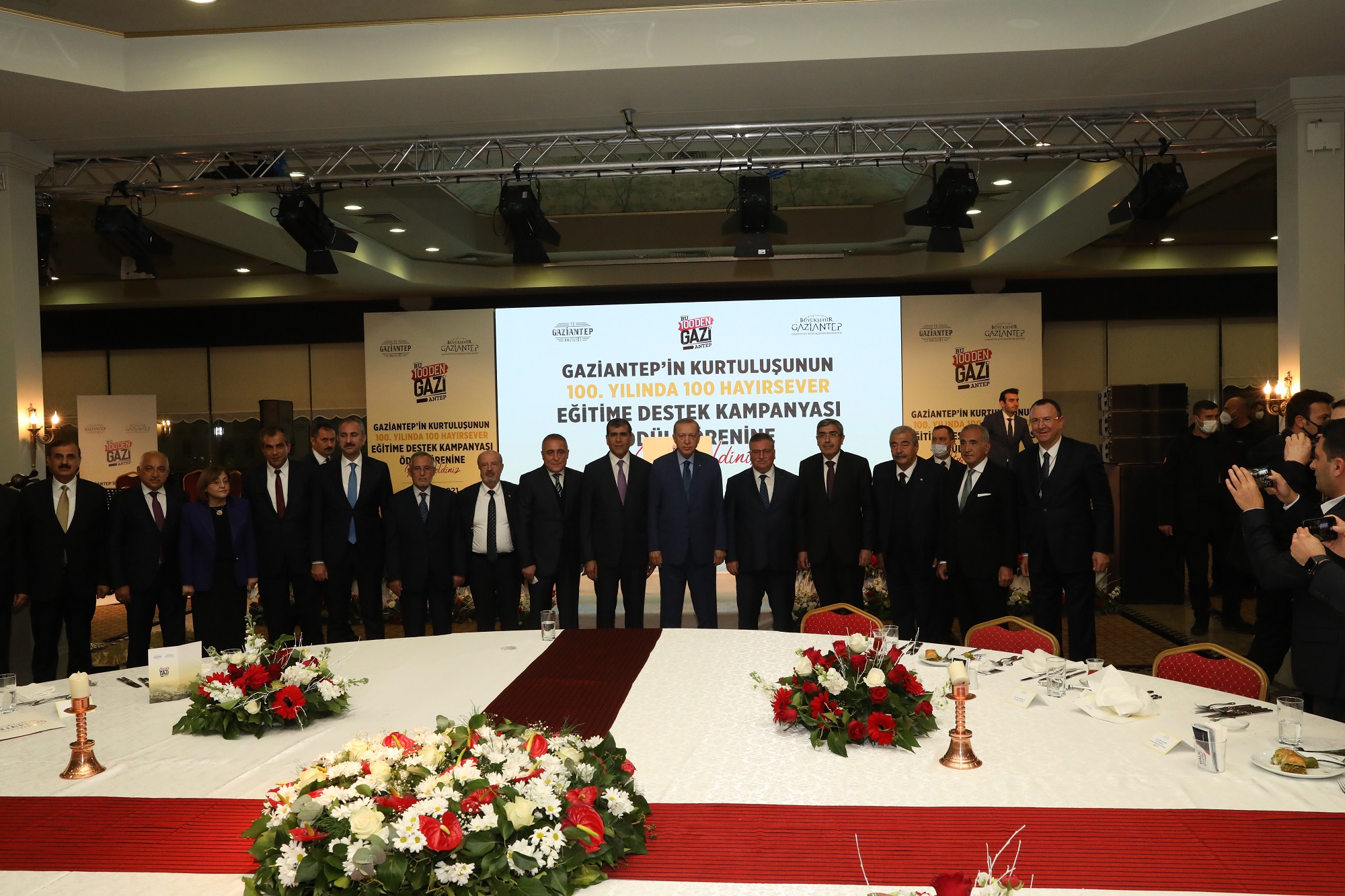 Cumhurbaşkanı Recep Tayyip Erdoğan, törendeki konuşmasında hayırsever iş insanlarına teşekkür ederek, “Bir şehri düşman işgalinden kurtarmak tabii ki önemlidir. Nesiller boyu hatırlanarak ibret alınması gerekli bir hadisedir. Ama kurtuluşu asıl perçinleyen ve taçlandıran, insanı ile altyapısı, üstyapısı ile gelişmesi, kalkınması, büyümesidir. Gaziantep bunu başarmış bir şehirdir. Gaziantep bu yolda öyle bir yol kat etti ki başarısı sadece kendisi ile sınırlı kalmamış bölgesinde ve dünyada örnek alınan bir kalkınma modeline dönüşmüştür. İstihdamla, üretimle büyüyen Gaziantep gibi şehirlerden aldığımız ilhamla şimdi ülkemizi 81 vilayetinin tamamıyla birlikte aynı hedeflere ulaştırmak için çalışıyoruz. Milli Mücadele sürecinde en büyük desteği ve katkıyı yine Gaziantep’ten bekliyoruz. Bugün burada şehrimize kazandırdığı okullar ve bu kurumlarla yetişmiş iş gücünün gelişmesine katkıda bulunacak iş insanları ile birlikteyiz. Bu insanların kazandıracağı okullar ve tesisler için teşekkür ediyorum. Eskiler ‘Bağış yağış gibidir’ der. Kültürümüzde emek ile ve üretimle özdeşleştirilen bereket, ihsanla, iyilikle, cömertlikle, kanaatle, infakla yan yana kabul edilir. Medeniyetimizde Allah rızası için hayır işinde bulunanlara ‘mübarek’ denir” ifadelerini kullandı.