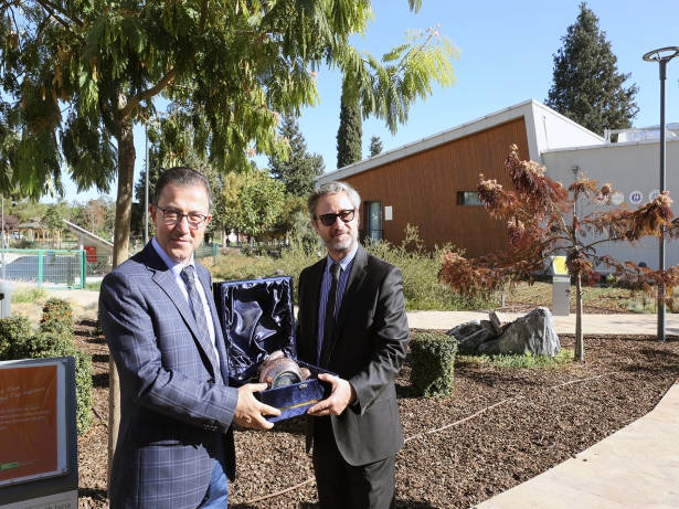 Büyükşehir Belediyesi Genel Sekreter Deniz Köken, AB Türkiye Delegasyon Başkan Yardımcısı Gabriel Munuera’ya işlemeli bakır kavanoz hediye etti.