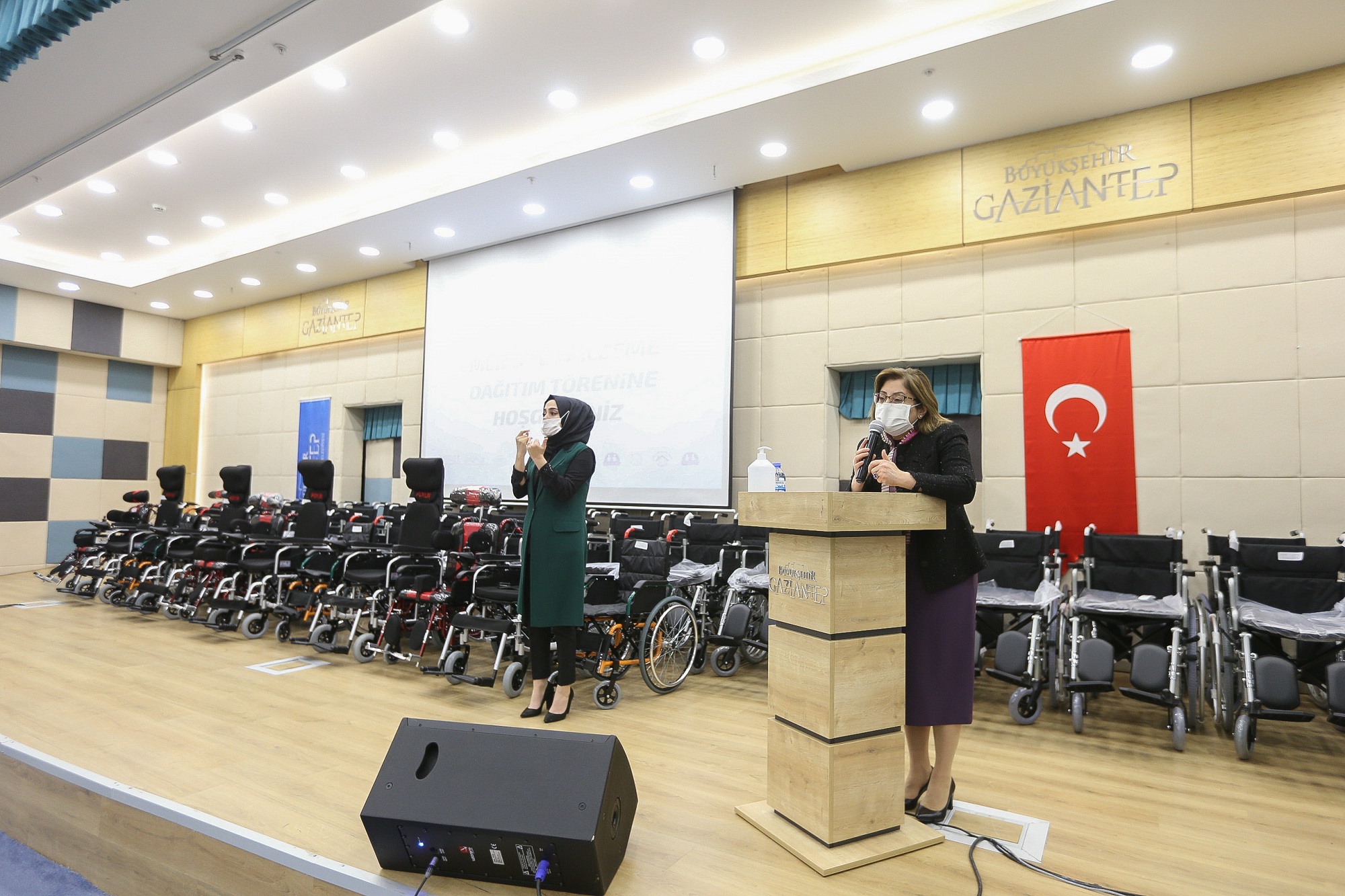 Gaziantep Büyükşehir Belediyesi ile Kaplan Holding iş birliğinde engelli bireylere akülü sandalye ve medikal malzeme dağıtıldı. Dağıtım töreninde konuşan Başkan Şahin, engelli bireylerin yaşamına dokunarak çocukların ve gençlerin ihtiyaçlarını giderdiklerini, anne ve babaları bir nebzede olsa rahata erdirdiklerini söyledi.