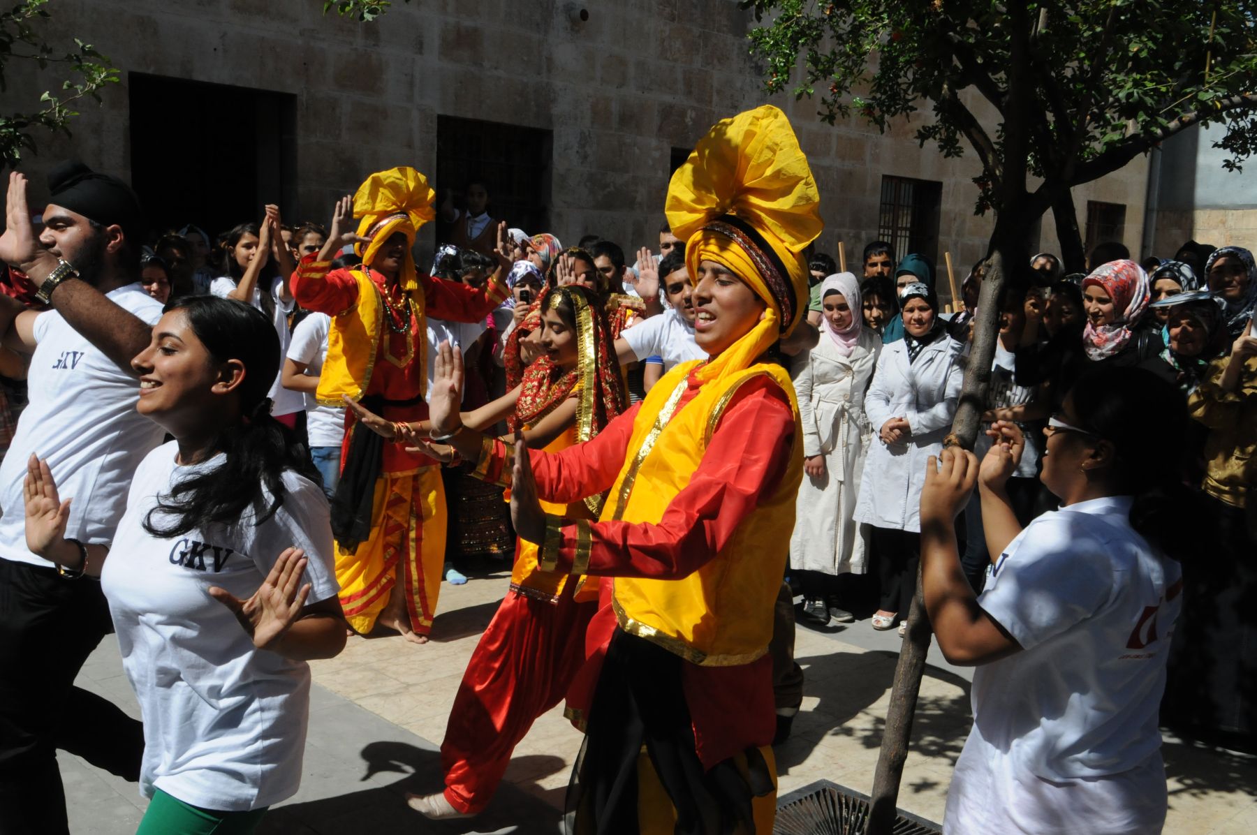 Bu arada sergide Hindistan’dan gelen bir grup öğrenciler özel bir sunum yaptılar. Ülkelerine ait oyunlar ve şarkılar ile katılımcıların büyük beğenisini toplayan Hindistanlı öğrenciler, sergi sonrası Başkan Güzelbey’e ülkeye ait yöresel hediye takdim ettiler.