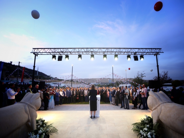 Hitit Kültür Kapısı’nın açılış töreninde konuşan Büyükşehir Belediye Başkanı Fatma Şahin, “Gazi şehir çok özel bir şehir, bütün Dünya’yı dolaşan Evliya Çelebi, buraya gelince Ayıntab-ı Cihan dünyanın gözbebeği demiş, Hitit kültür kapısından 5 tane daha var. Roma dönemi, Osmanlı dönemi, Selçuklu dönemi ve İslam medeniyetini bağrından çıkaran başka bir şehir düşünemezsiniz. Daha memleket Fırat’ın güzelliğini göremedi, o eşsiz tarihini, medeniyetini görmedi, Rumkale su sporlarıyla burayı tanıtmaya çalışıyoruz. Her kapımız başka güzel, Oğuzeli’nde, büyük bir Barak Ovası var toprak kıpkırmızı, yemyeşil, suyu başka güzel, insanı, toprağı başka güzel. Kültür ve medeniyet dolayısıyla bu toprakların bu güzelliğinden dolayı bazı güçlerin çok hesabı var. İşte bugün yaşadıklarımız buranın güzelliklerinden kaynaklanıyor. Bizi gazi yapan nasıl Fırat Kalkanı Harekâtı’nda sapasağlam durduysak, Barış Pınarı Harekâtı’nda da rabbimin izniyle Mehmetçiğimizin cesaretiyle, cumhurbaşkanımızın ve tüm siyasi partilerin genel başkanlarının sağlam duruşuyla buradan çıkacağız. Allah’ın izniyle bunu birlikte başaracağız. Bu kapılar sağlam, bu kapıların ardında gazilerin torunları var. Bayrağı için, istiklali için, istikbali için can verenler var” diye konuştu.