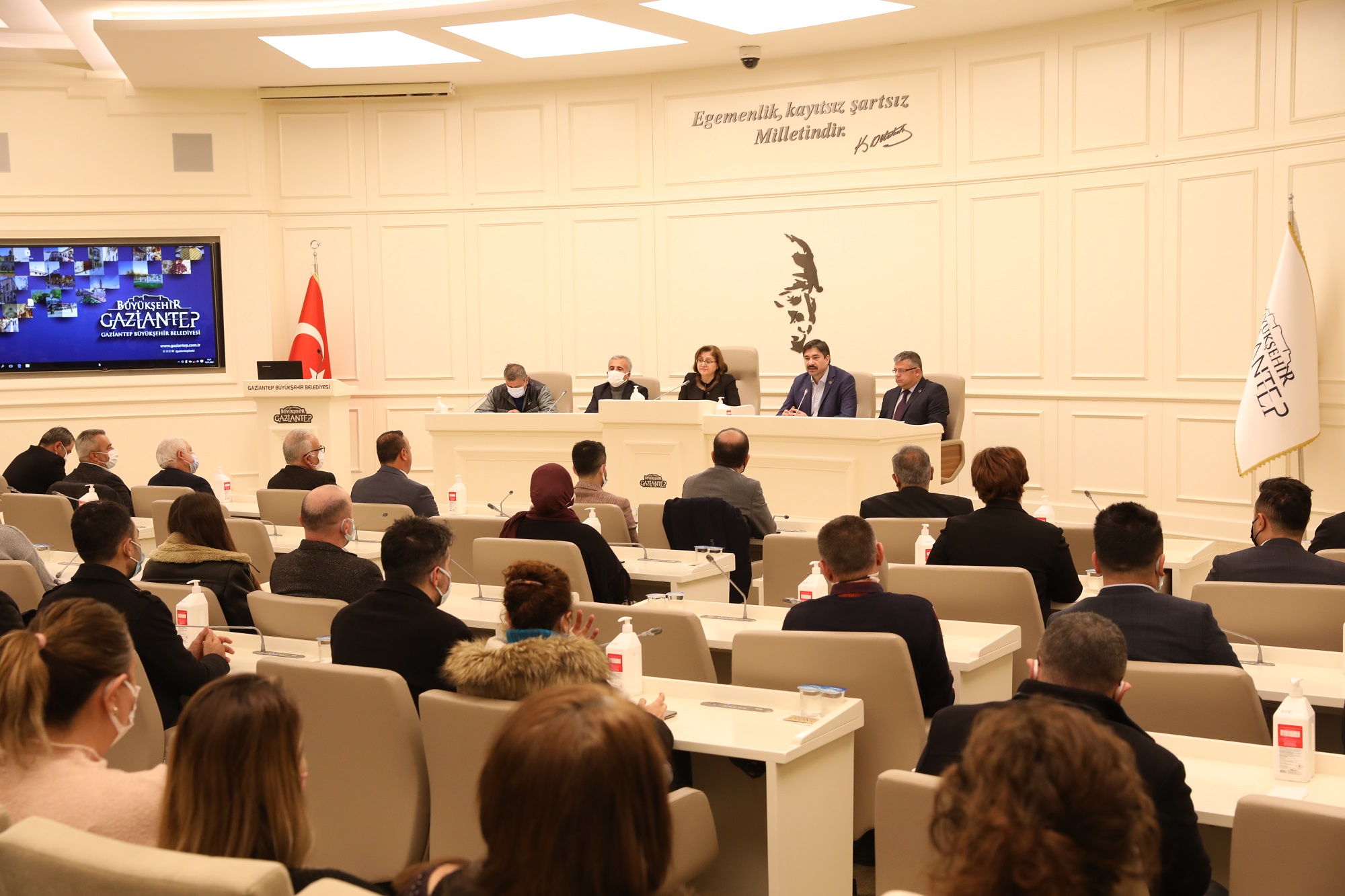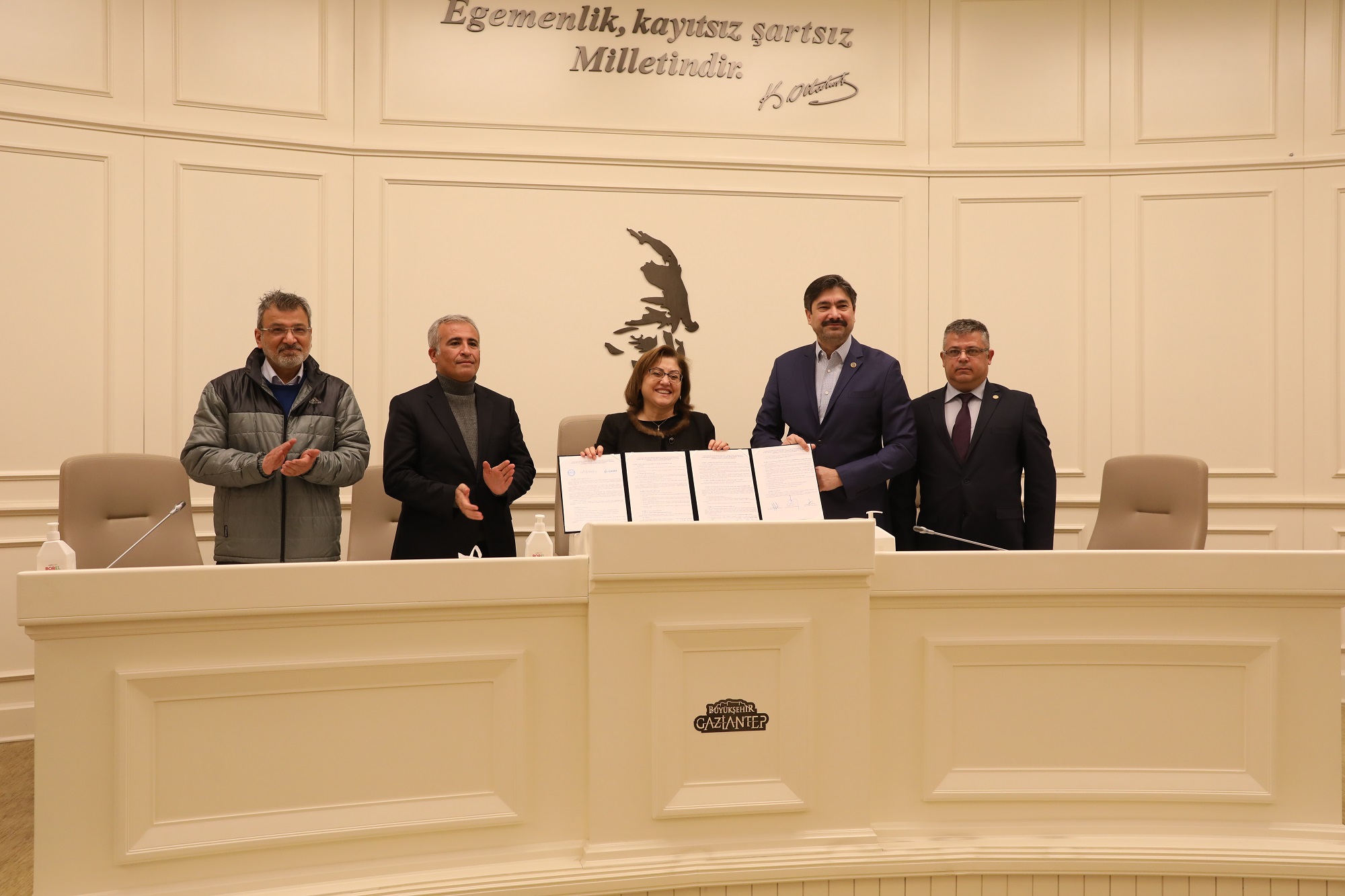“Bu salon vizyon demek, akıl demek, inanç demek, mücadele demek. Bu salon baktığınız zaman birlik ve beraberlik ruhunun var olduğu bir yer. En büyük alkışı salonda bulunan belediye çalışanlarımız hak ediyor. O yüzden sizler ilk önce kendinizi alkışlamalısınız. Dışarıdaki bereketli bir kar yağışı var. İçeride de bereketi beraberinde getirecek bir imza töreni var. İnşallah pozitif gündemi Gaziantep Büyükşehir ailesi olarak her zaman muhafaza edeceğiz.”