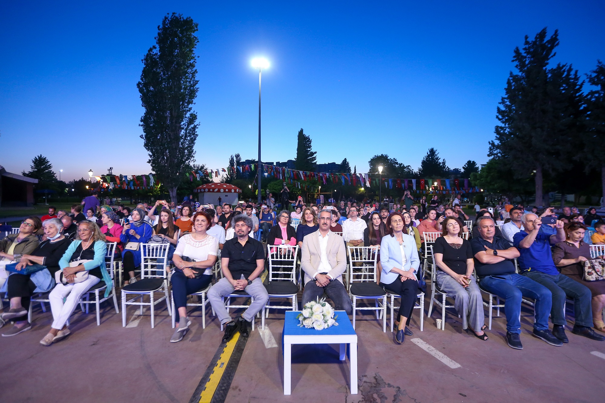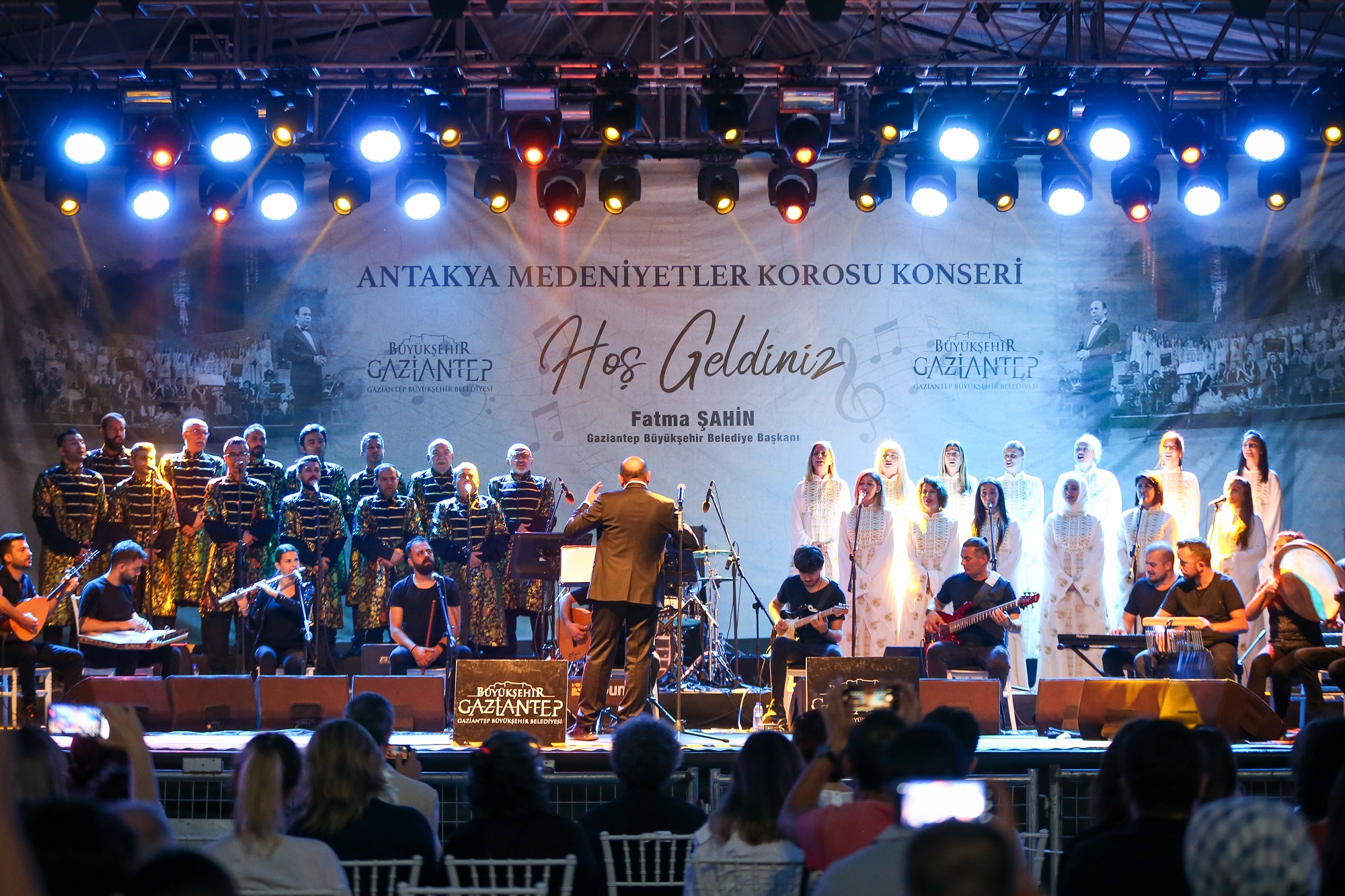 Antakya Medeniyetler Korosu konseri yaklaşık 1 buçuk saat sürdü. Konserin sonunda Gaziantep Büyükşehir Belediyesi Başkan Vekili Erdem Güzelbey, günün anısına şef Yılmaz Özfırat’a çiçek verdi.