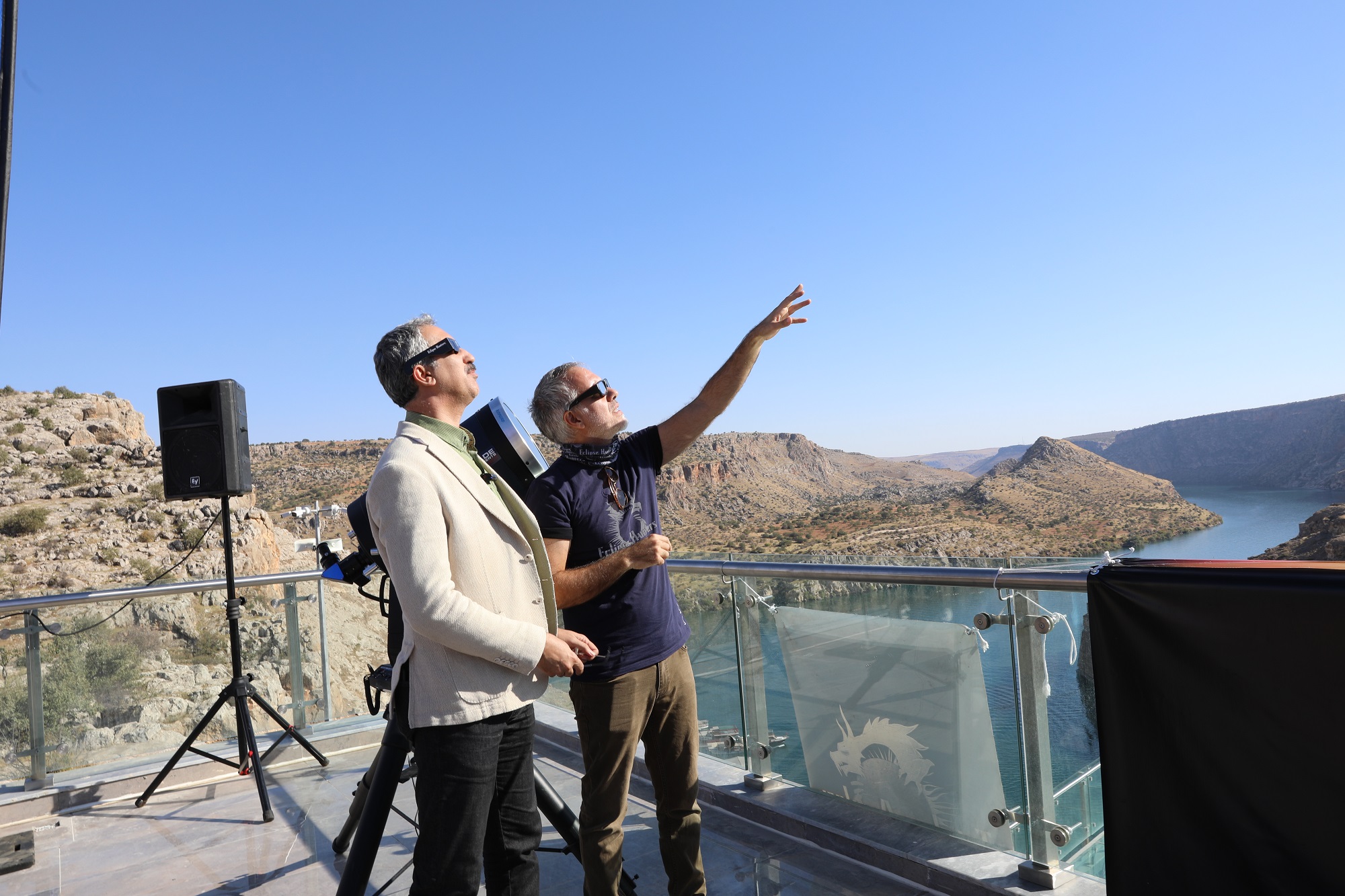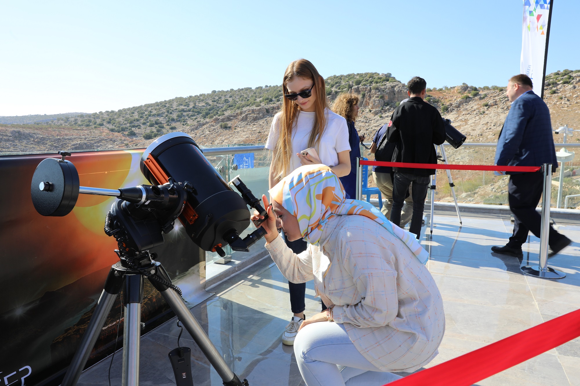 2027 yılına kadar Türkiye’den görülebilecek son güneş tutulmasına Gaziantepli yüzlerce vatandaş, Fırat’ın incisi Rumkale Cam Terası’nda teleskoplar ve özel filtreli gözlüklerle sabah saatlerinde takip etmeye başladı.