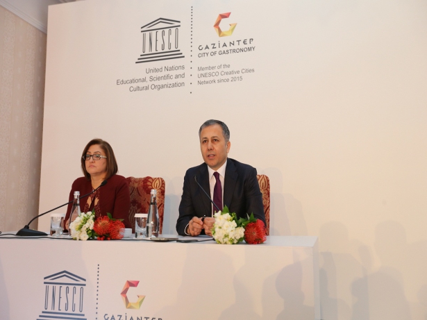 Kentte 350 bin Suriyelinin misafir edildiğini hatırlatan Yerlikaya, “Sofralarımızı her zaman paylaştık paylaşmaya da devam edeceğiz. Bugün mutfağımızın başarısı dünyada tescillendi. Geçen sene dünya turizminin toplam sayısı 1 milyar 133 milyon olarak açıklandı. Araştırmalarda bir ülkeye gitme amaçlarından en önemlilerinden birinin gastronomi yani yeme içme kültürü olduğu ortaya çıkmış. Sizlerin aracılığıyla Türkiye’ye özellikle Gaziantep’e gelin, gönül sofralarımızı görün, yaşayın ve yaşamamış olanlara anlatın diyoruz” diye konuştu.