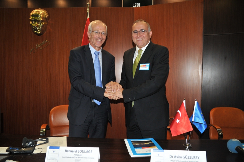 Gaziantep Büyükşehir Belediye Başkanı Dr. Asım Güzelbey ve AB Bölgeler Komisyonu Üyesi Türkiye Çalışma Grubu Başkanı Bernard Soulage kameralara poz verdiler.