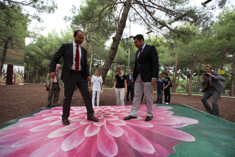 Ziyaret sonunda Norveç Dışişleri Bakan Yardımcısı Torgeir Larsen, Büyükelçi Janis Bjorn Kanavin ve Büyükşehir Belediye Başkan Vekili Selami Yetkinşekerci, merkezde bulunan anıt önünde hatıra fotoğrafı çektirdi.