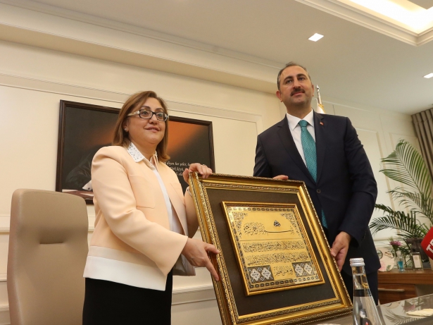 Ziyaret sonrası Şahin, Bakan Gül’e “Ayetel Kürsi’nin yazıldığı bir tablo ile Gaziantep’e has bakırdan yapılmış ibrik hediye etti.