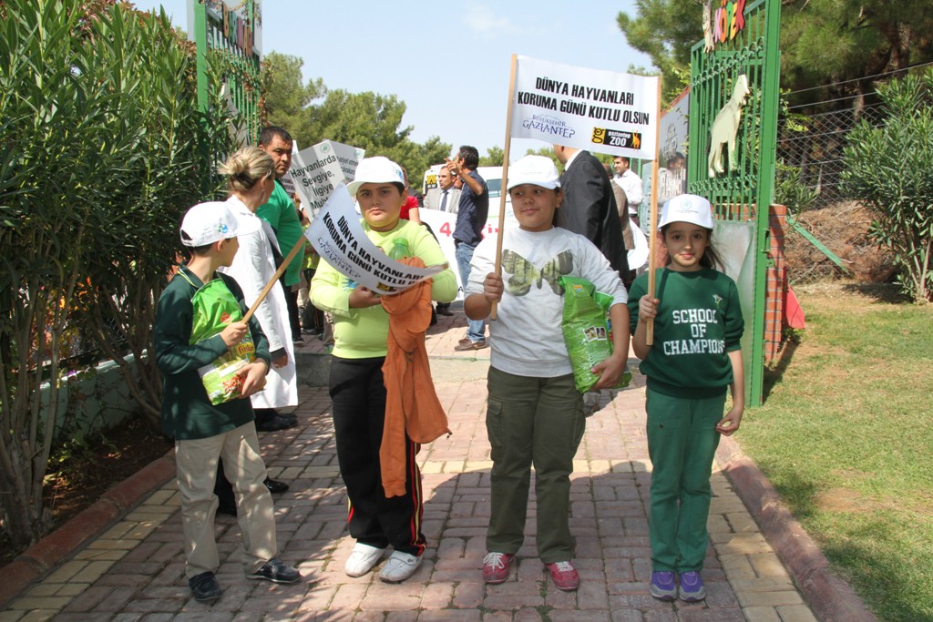 Türkiye’nin en büyük hayvanat bahçesi olma özelliğini taşıyan Gaziantep Hayvanat Bahçesi’nde 4 Ekim Hayvanları Koruma Günü nedeniyle anlamlı bir etkinlik düzenlendi. Etkinlik kapsamında hayvanat bahçesine davet edilen yüzlerce çocuk, barınaklarında bulunan köpeklere yakın ilgi gösterdi. En çok köpek yavrularına ilgi gösteren çocuklar, bol bol hatıra fotoğrafı çektirmeyi de ihmal etmedi. Köpeklere su ve yemek veren çocukların mutluluğu yüzlerine yansıdı.