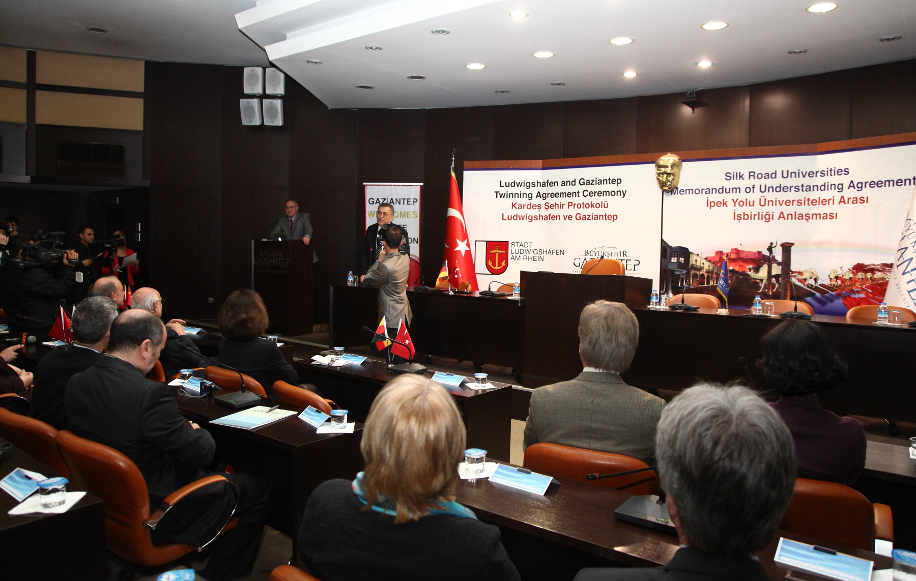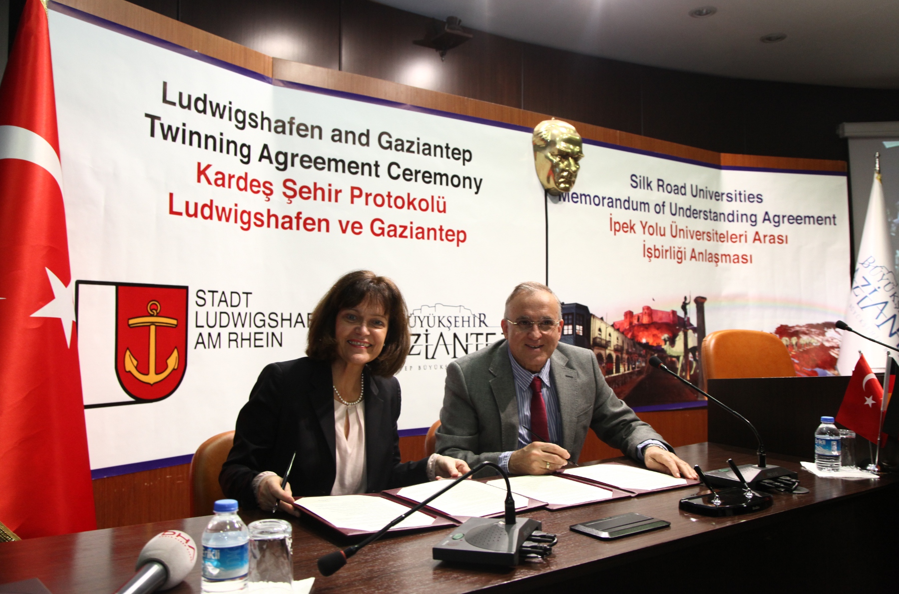 Almanya’nın Ludwigshafen Belediye Başkanı Dr. Eva Lohse ise, Gaziantep’te ağırlanmaktan büyük bir onur duyduğunu belirterek, “Ziyaretimizi dostluğa dönüştürmek ve protokole dökmek için bugün buradayız. Ne yazık ki dostluğumuz acı bir olay ile başladı. Ben ve ekibim Gaziantepli ailelere şükranlarımı iletiyoruz. Bu acı olayın üzerinden 6 yıl geçti. Bu tarihten sonra şehirlerimiz arasında işbirlikleri ve projeler hayata geçti. 2010 yılından itibaren ilişkilerimiz hız kazandı” diye konuştu.