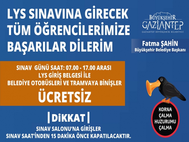 Tramvay ve otobüsler LYS’nin yapılacağı tarihlerde saat 07.00 ve 17.00 arasında ücretsiz olacak.