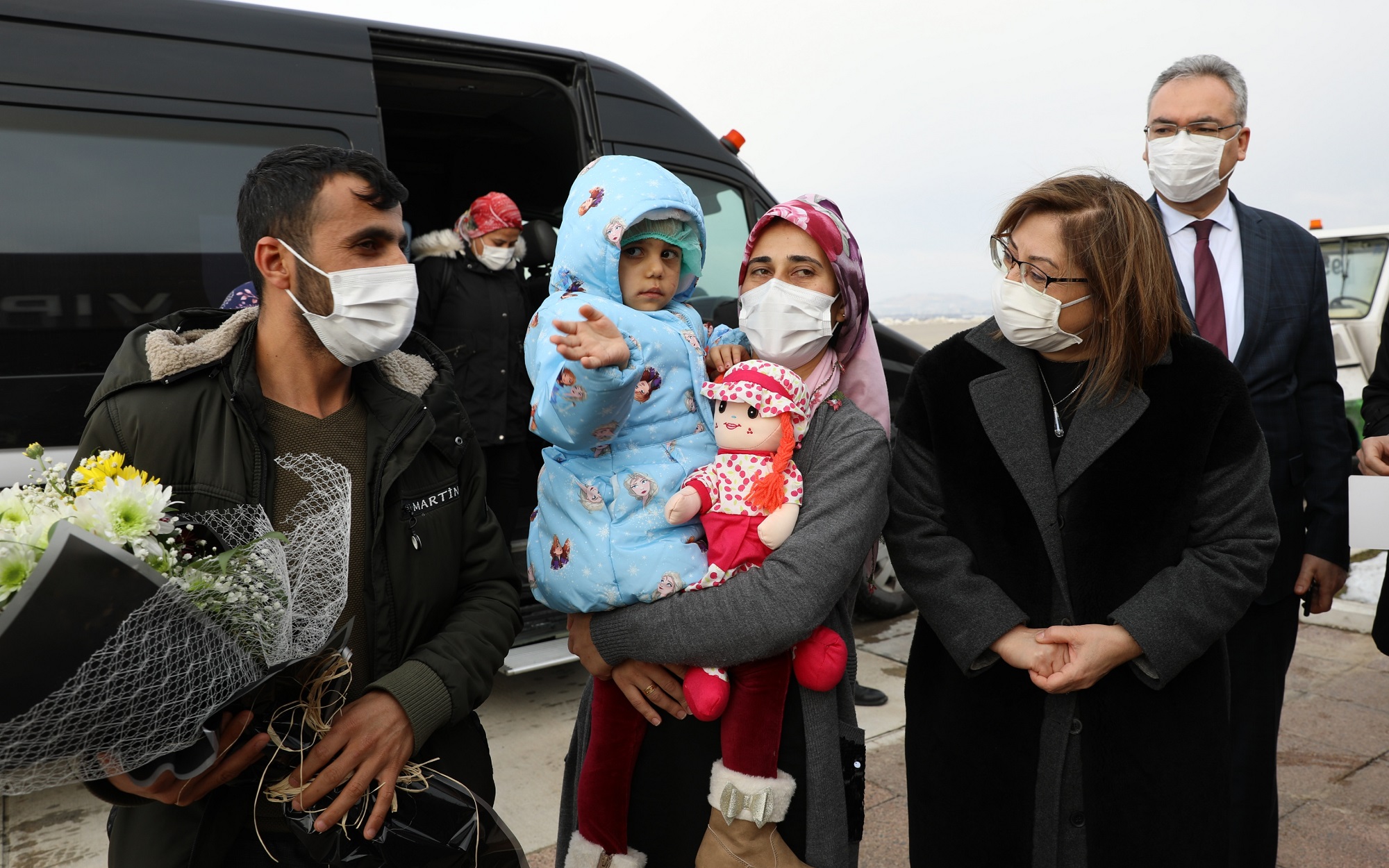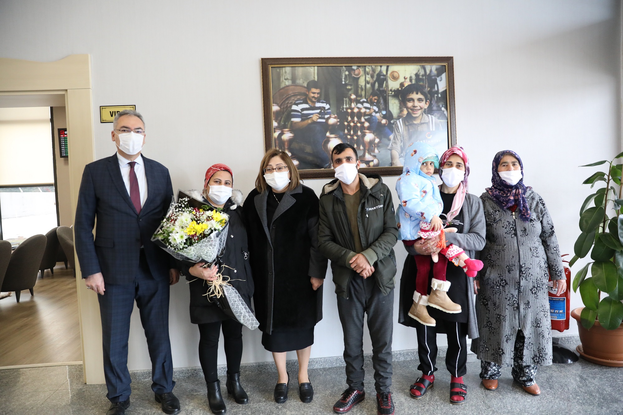 Havalimanında yapılan karşılamada konuşan GBB Başkanı Fatma Şahin bir anne olarak 2 milyon insanın yaşadığı Gaziantep’e emanet hissi ile yaklaştığını belirterek, “Yüreğimdeki heyecanı size anlatamam. 55 yıllık hayatımda en heyecan duyduğum anlardan birini yaşıyorum. Bebeğimiz şu anda hakikaten çok sağlıklı. Bunu tesis eden Sayın Cumhurbaşkanımız var. ‘Beni Türk doktorlarına emanet edin’ diyen Mustafa Kemal Atatürk’ün aslında verdiği bir örnek var. Bugün Ömer Hoca ile doktorlarımızla, doktorlarımızın kalifikasyonu ile yürüyoruz. Ömer hocamıza, rektör hanıma çok teşekkür ediyoruz. Sağlık bakanımız ve adalet bakanımız birebir uğraştılar. Milletvekillerimiz birebir takip ettiler. Burada valim her şeyini takip etti. Hüseyin kardeşimizin hem iş sorunu çözüldü hem ev sorunu çözüldü. Biz on gün önce bütün ekibi, sağlık işleri, sosyal işler başkanlığımızı gönderdik. Bize düşen büyükşehir olarak yapılması gereken ne varsa yapalım diye. Bütün ihtiyaçlarını gidermek için çalıştık. Bundan sonrası da bize emanet. Tekrar geçmiş olsun. İnşallah bundan sonra bu olaylar yaşanmasın diye de her türlü tedbiri almaya devam ediyoruz.” dedi.