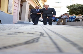 Heyetler daha sonra tarihi sokaktaki mozaik çalışmasının yapıldığı alana geçerek,  daha öncede mozaik kaplı olan fakat orijinalinin Ljubljana müzesine kaldırıldığı kültür merkezinin önündeki replikanın açılışını yaptılar.