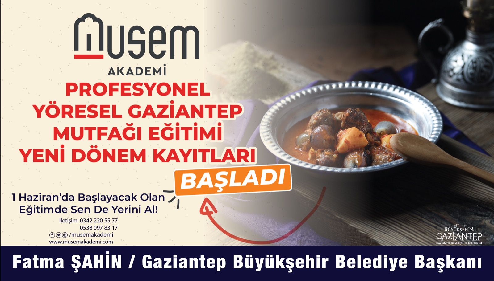 Gaziantep Büyükşehir Belediyesi tarafından Türk ve Gaziantep mutfağının gastronomi geleneğini yaşatmak ve genç şeflerin istihdamına destek vermek amacıyla kurulan Mutfak Sanatları Eğitim Merkezi (MUSEM) Akademisi’nin hazırlamış olduğu “Gaziantep Yöresel Mutfağı Müfredatı” Milli Eğitim Bakanlığı Onaylanmış Çerçeve Programları’na kabul edildi.