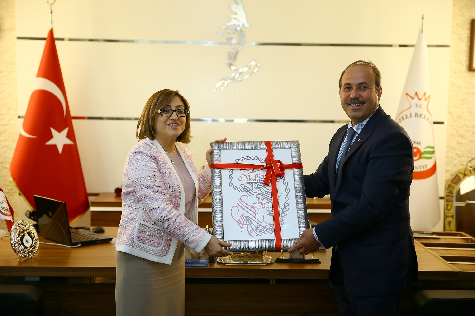Şahin, daha sonra Oğuzeli Belediye Başkanı Sait Kılıç’ı da ziyaret etti. Şahin, Kılıç’tan ilçenin sorunları hakkın bir takım bilgiler aldı. Bu arada, Sait Kılıç da Başkan Şahin’in hat yazısı ile adının yazıldığı bir tablo hediye etti.