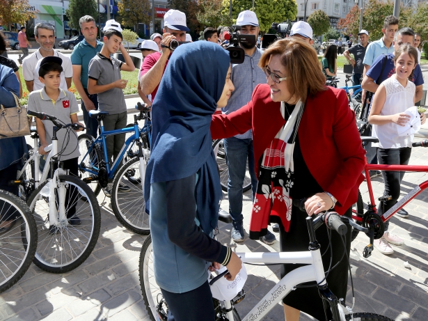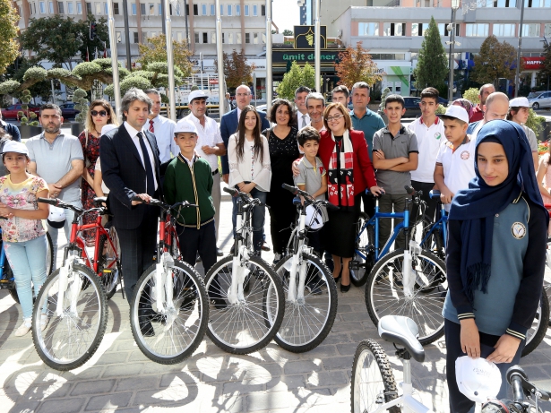 Konuşmaların ardından başarılı olan 24 öğrenciye bisikletleri verildi.