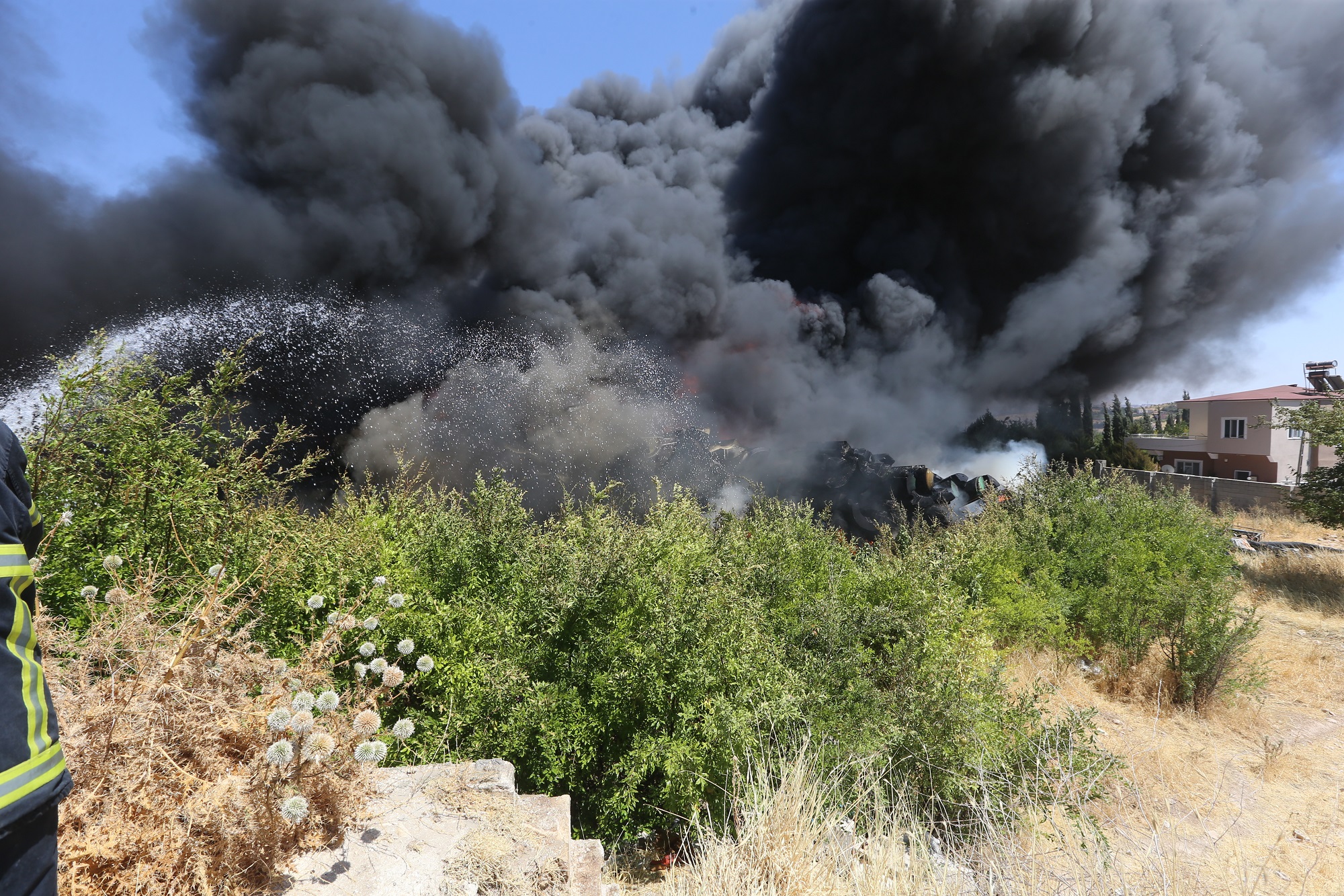 Şahinbey İlçesi’ne bağlı Sarısalkım Mahallesi’nde bir aracın elektrik direğine çarpması sonucu kopan kablolardan çıkan kıvılcımların kuru otları tutuşturmasıyla başlayan yangın, içerisinde tekne yapımında kullanılan ürünlerin bulunduğu depoya sıçramasıyla büyüdü. İhbarın gelmesiyle olay yerine intikal eden Gaziantep Büyükşehir Belediyesi İtfaiye Daire Başkanlığı’na bağlı ekipler ilk müdahaleyi gerçekleştirdi. 10 dönümlük arazide etkili olan yangın, 40 araç ve 130 personelle 3 saat süren çalışmanın ardından çevrede bulunan yerleşim alanlarına sıçramadan kontrol altına alındı. Soğutma çalışmalarının yapıldığı alanda herhangi bir can kaybı ve yaralanma yaşanmadı.