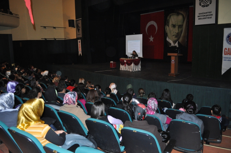 Bu projeler kapsamında Gaziantep Büyükşehir Belediyesi Sanat ve Meslek Eğitimi Kursları tarafından Avukat Ebru Özçörekçinin konuşmacı olarak yer aldığı Kadına Şiddet ve Boşanma konulu bir konferans düzenlendi.
