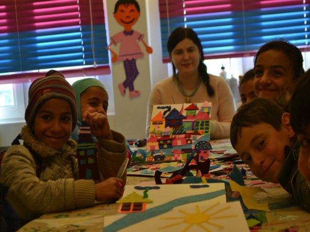 Sosyal etkinlik kapsamında farklı ve özgün çalışmaların yapıldığı Çocuk Sanat Merkezi'ne Suriyeli öğrenciler kadar öğretmenleri de çok yoğun ilgi gösterdi.