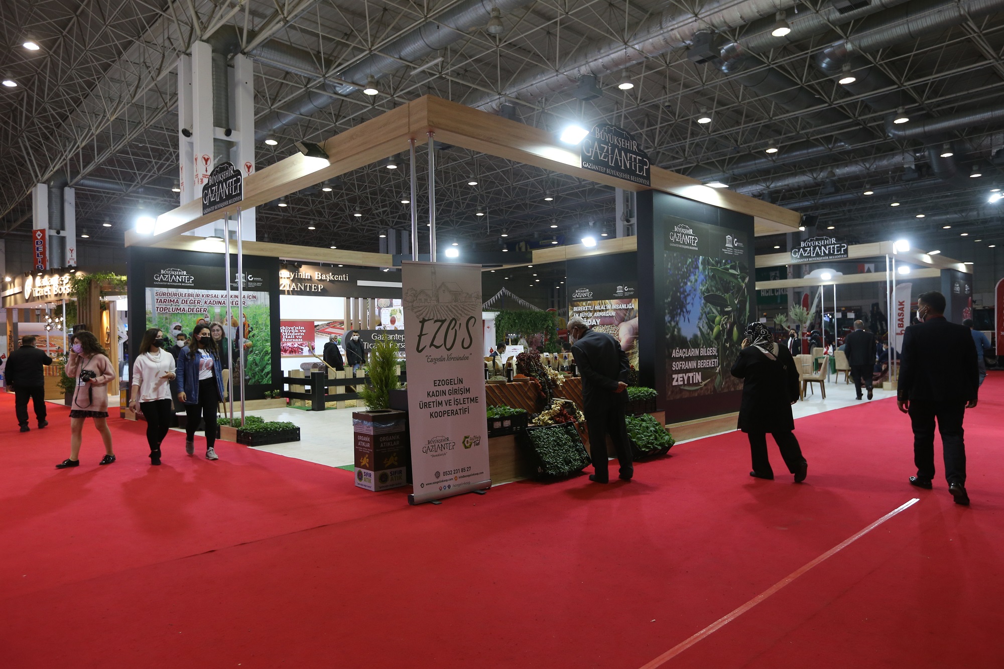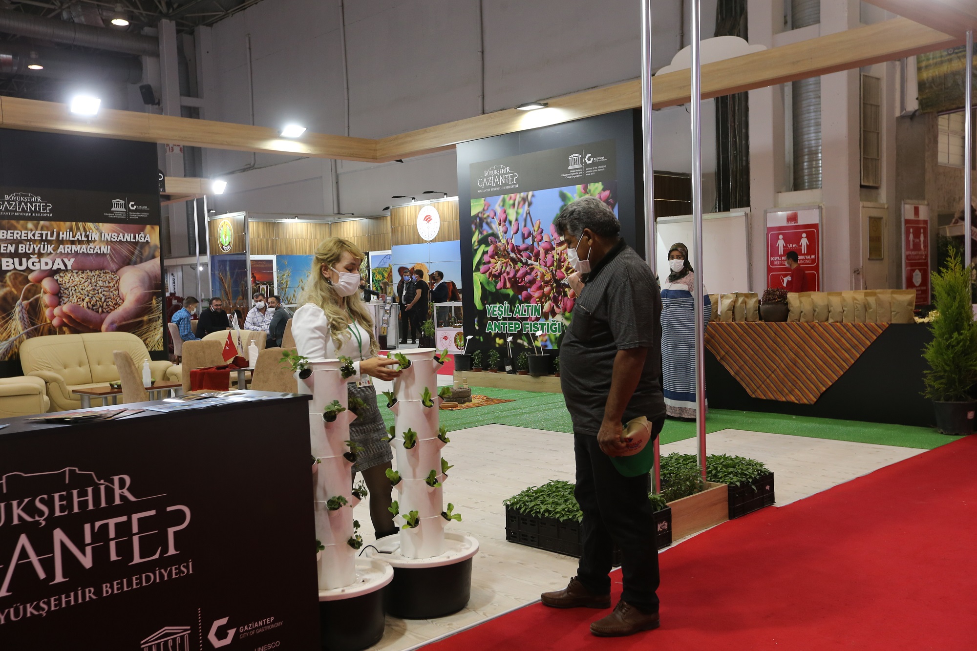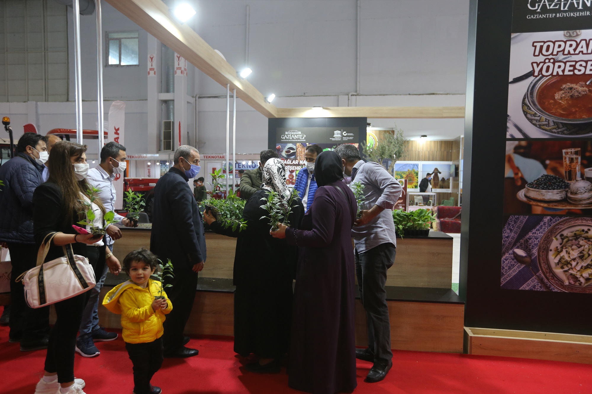 Büyükşehir Belediyesi standını ziyaret edenler, Oğuzeli Gastronomi ve Tarımsal Eğitim Merkezi’nde yetiştirilen çeşitler, düzenlenen ve verilecek eğitimler, kurulmakta olan Freeze Dry tesisi ve Üzüm ve Nar Sıkma-İşleme ve Paketleme Tesisi, kadın kooperatifleri, Araban ilçesinde kurulması planlanan Sarımsak İşleme ve Paketleme Tesisi, Karkamış ilçesinde kurulması planlanan Nane Kurutma ve Paketleme Tesisi, Nizip ilçesinde kurulmakta olan Nane Kurutma Tesisi ve İslahiye ilçesinde kurulmakta olan Salça Üretim Tesisleri’nin üretim faaliyetleri, faydaları ile katma değerleri hakkında bilgi aldı. Tarımsal Hizmetler ve Gıda Daire Başkanlığı’nın yürüttüğü Sertifikalı Tohumluk Projesi kapsamında çiftçilere dağıtılan Ata Tohumları ve Sertifikalı Tohumluklar projelerinden faydalanmak isteyen çiftçilerin kayıtları alındı.